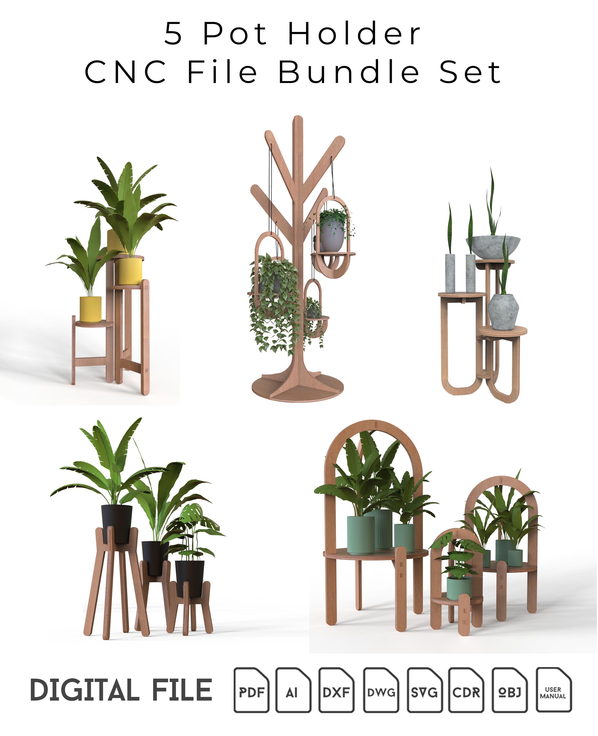 Plant pot stands cnc cut plan bundle set, Digital hanging stand, fl...