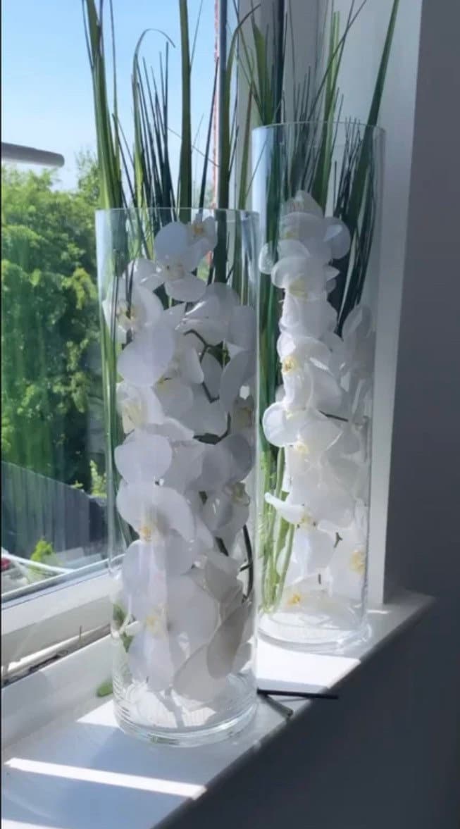Beautiful real touch orchids in a grass lined set of cylinder vases (vases 50 & 60cm, grass come...