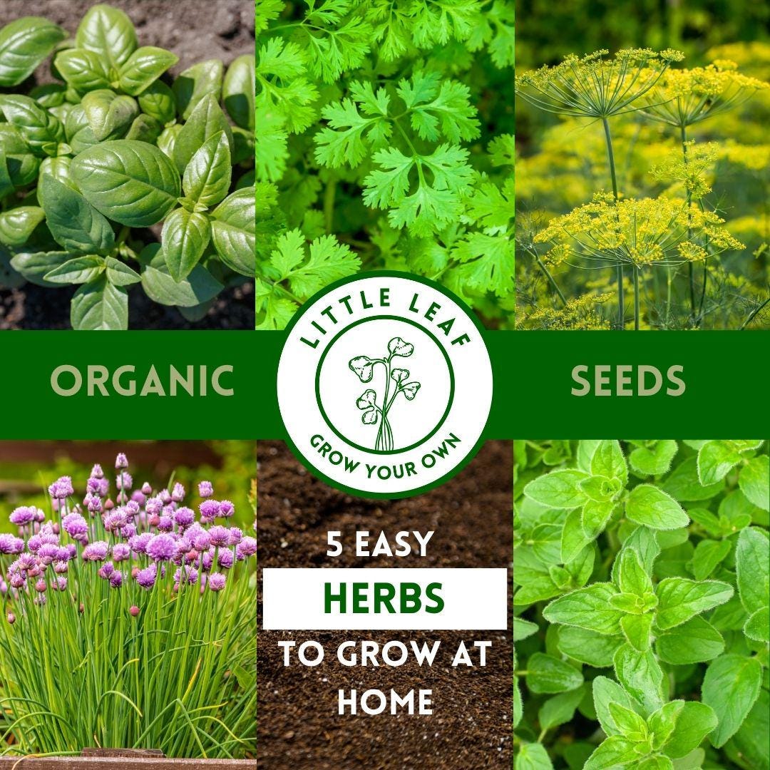 Organic Herb Seeds for Home Growing - 5 Easy-to-Grow Varieties with...