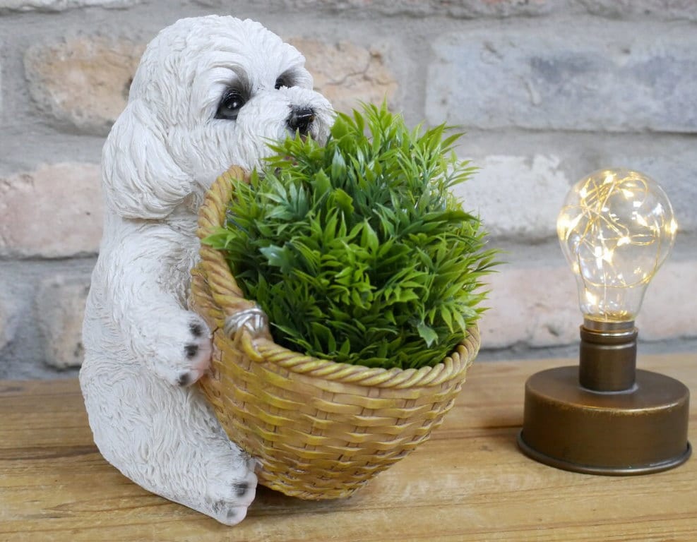 Puppy Planter Ornament with Flower Basket, Resin Dog Figurine, Wind...