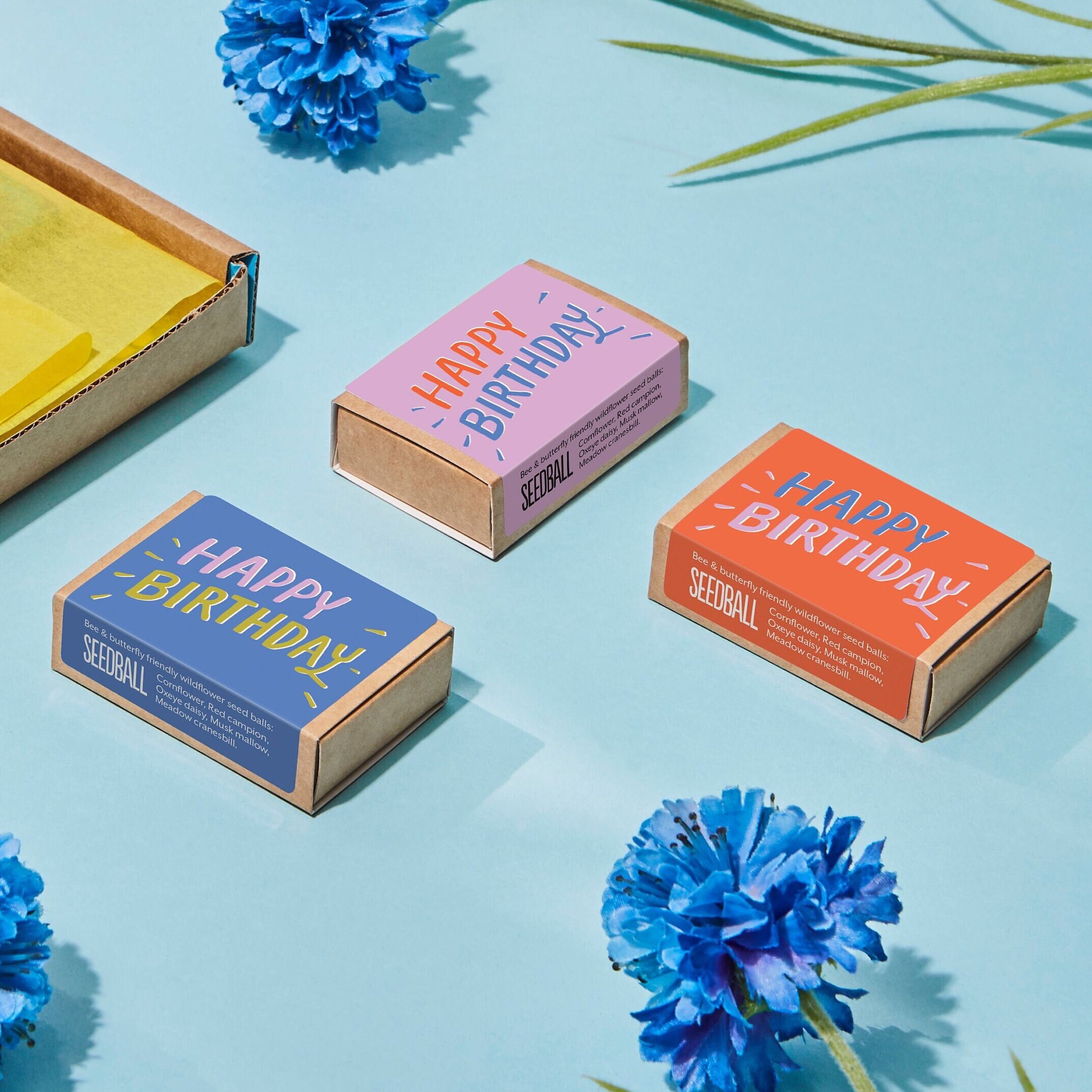 "Say \"Happy Birthday\" with this colourful set of three seed boxes packed with bee a...