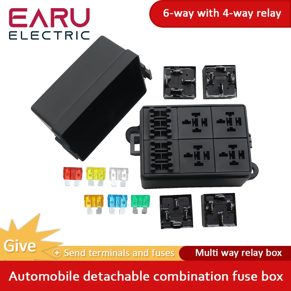 Earu Automotive 6-way fuse box with relay box assembly, 12 way 10 w...