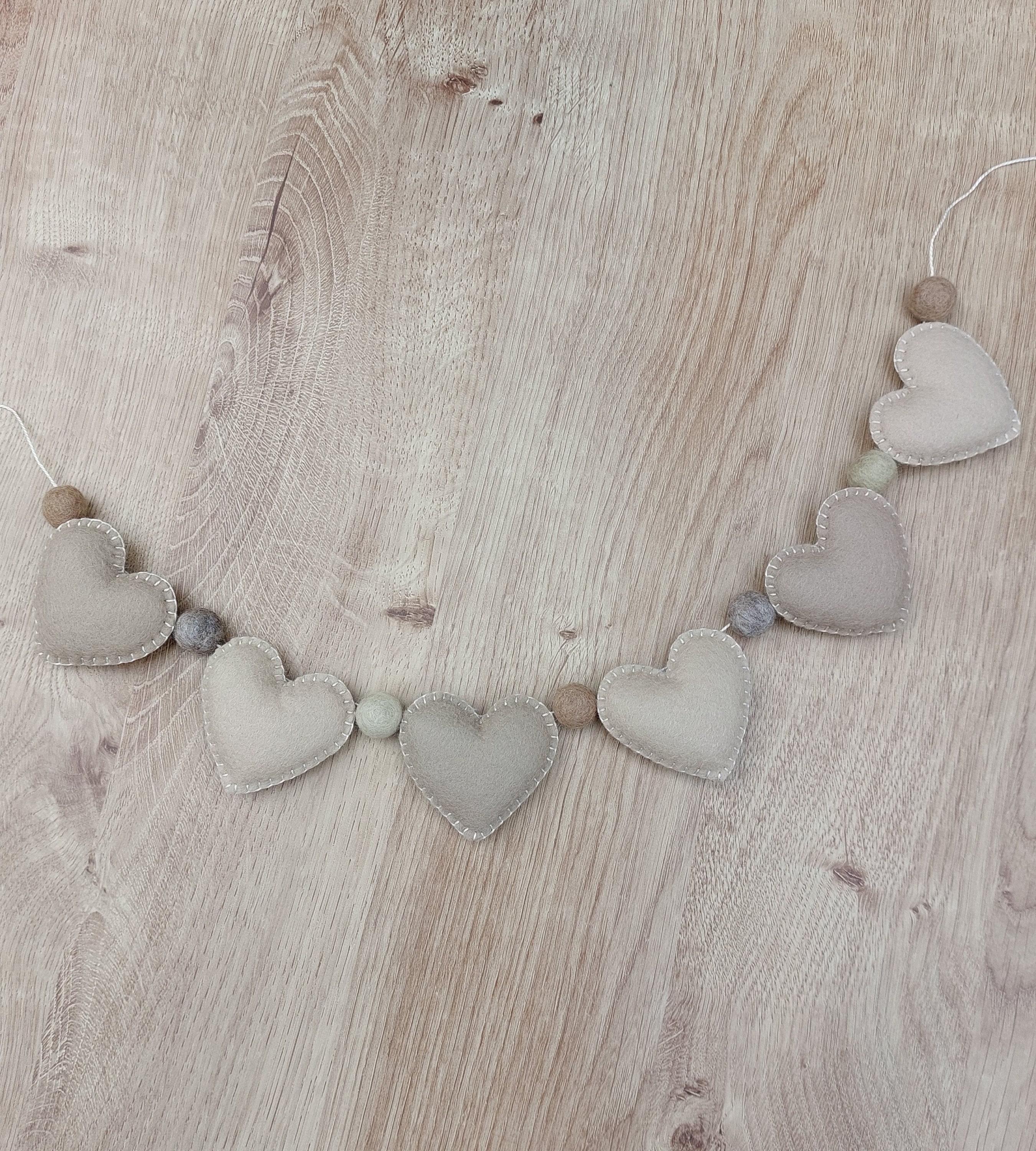 This pretty garland is made from cream woolfelt and cute neutral felt pom pom balls. Each heart meas...