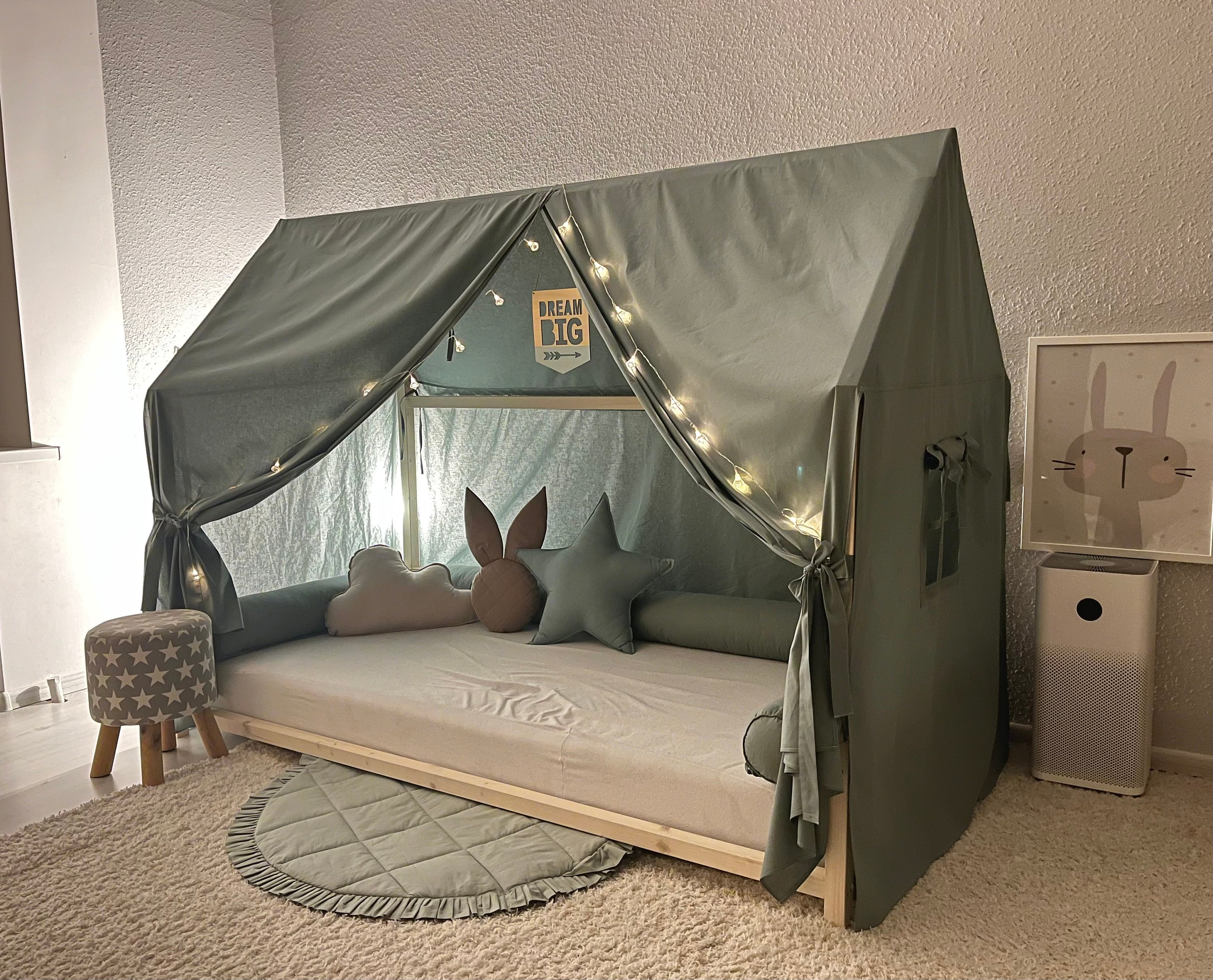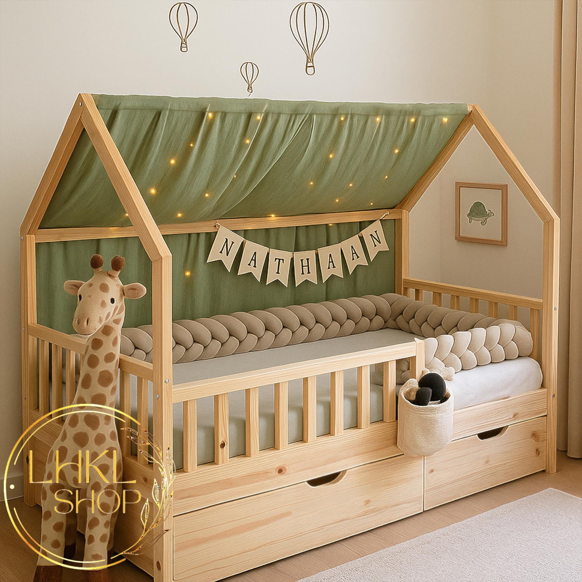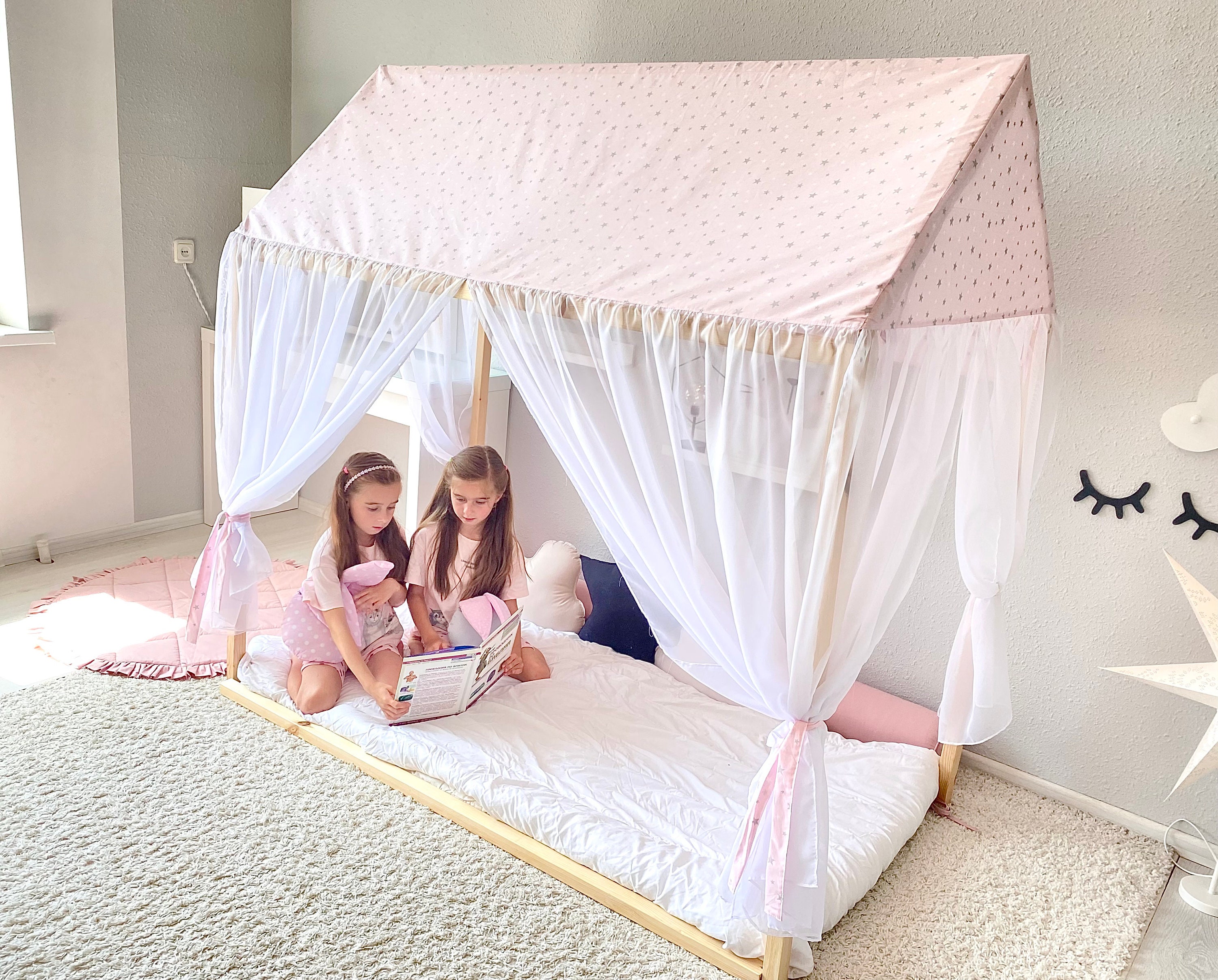 Linen House Bed Canopy, Montessori Bed Canopy, Canopy House Bed, Pl...