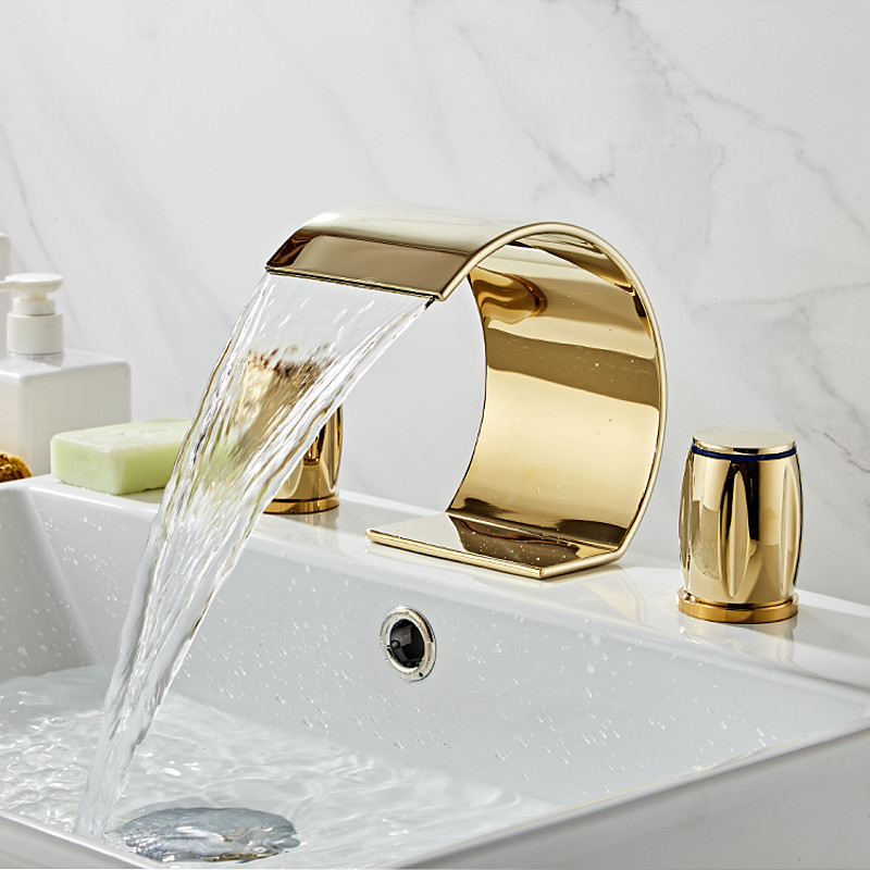 Widespread Bathroom Sink Mixer Faucet, Waterfall Arc Spout Brass 3 ...