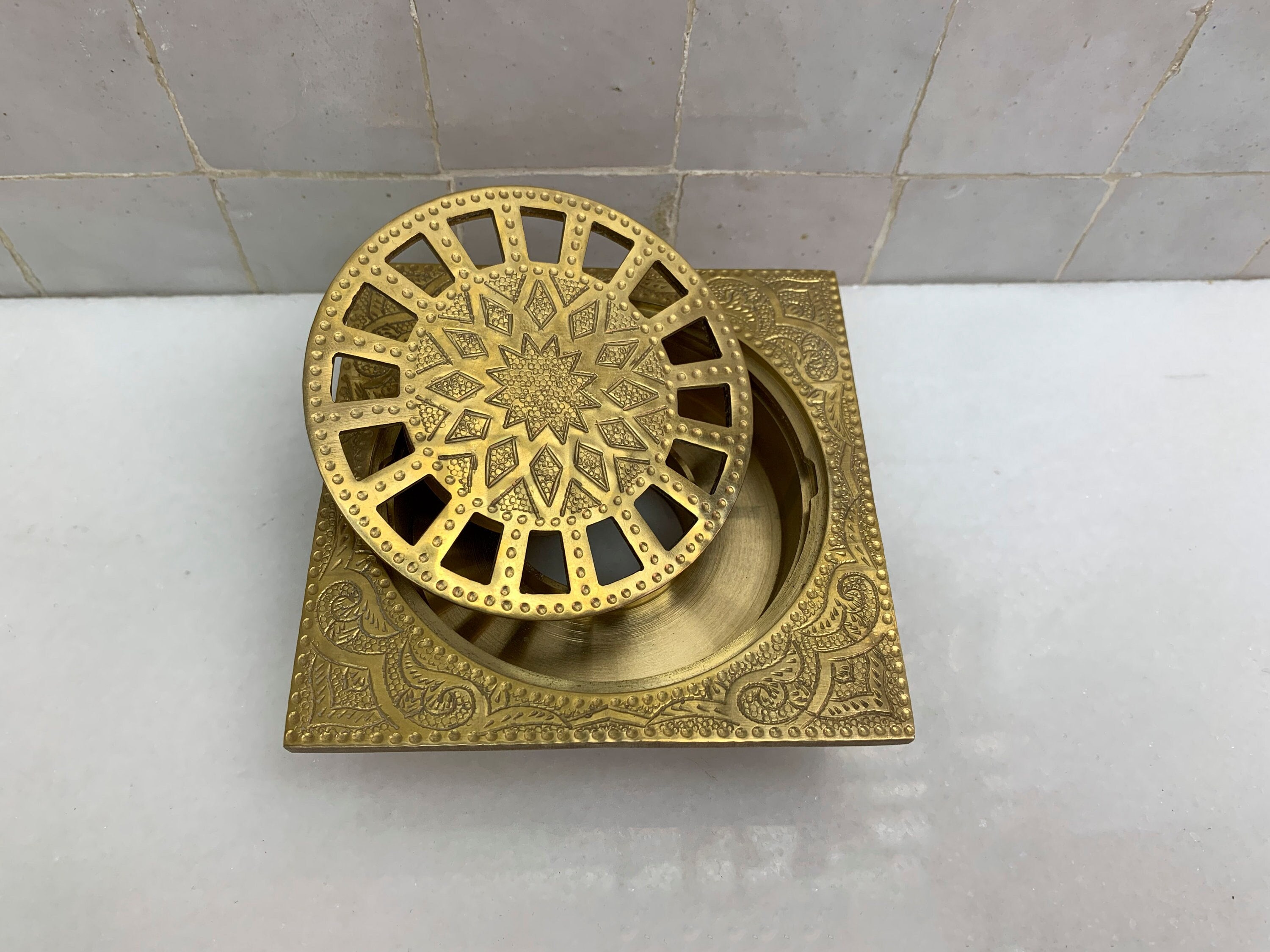 Unlacquered Brass shower drain, Engraved floor drain, bathroom drai...