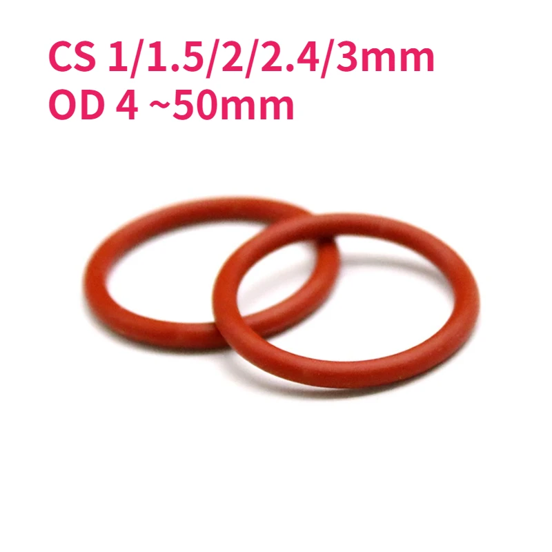 CS 1/1.5/2/2.4/3mm OD 4 ~50mm VMQ Food Grade Red Silicone O-Ring Ring Washer Gaskets Waterproof And ...
