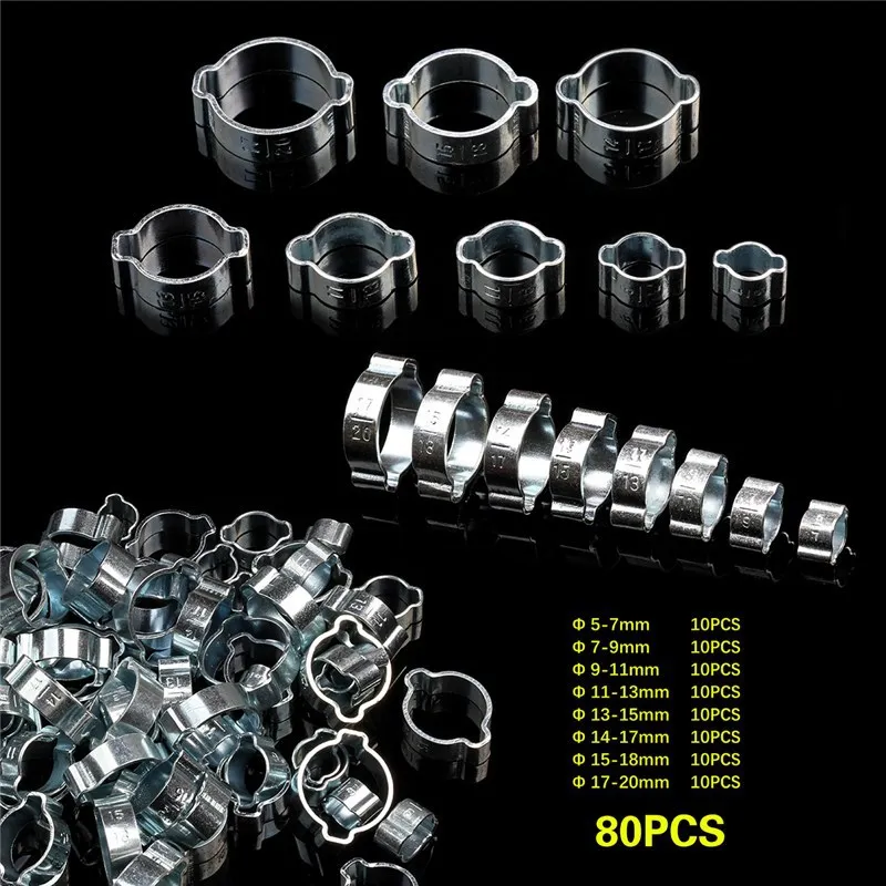 80PCS Double Ear Clamp O Clips Crimp Clip Air Silicone Petrol Water Fuel Hose Pipe Galvanized Iron H...