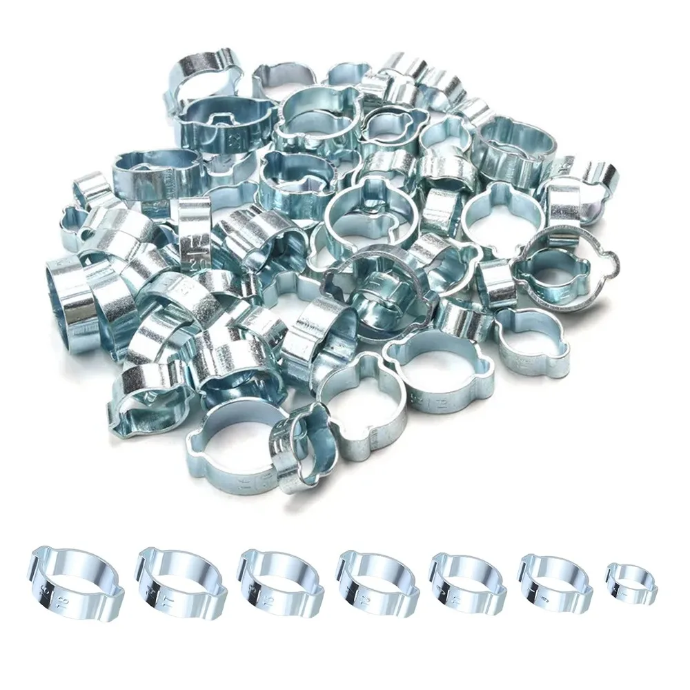 50pcs Double Ears Clamps Zinc Plated O Clips Rings Two Ear Hose Clips 5-40mm Fuel Air Water Hose Tub...