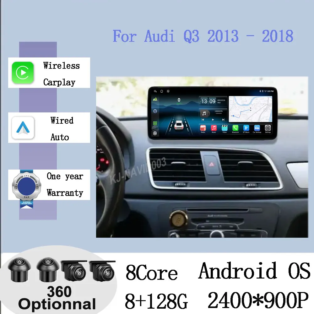 2400*900P QLED Screen Wireless CarPlay Android 15 Auto For Audi Q3 2013 - 2018 Car Multimedia Radio ...