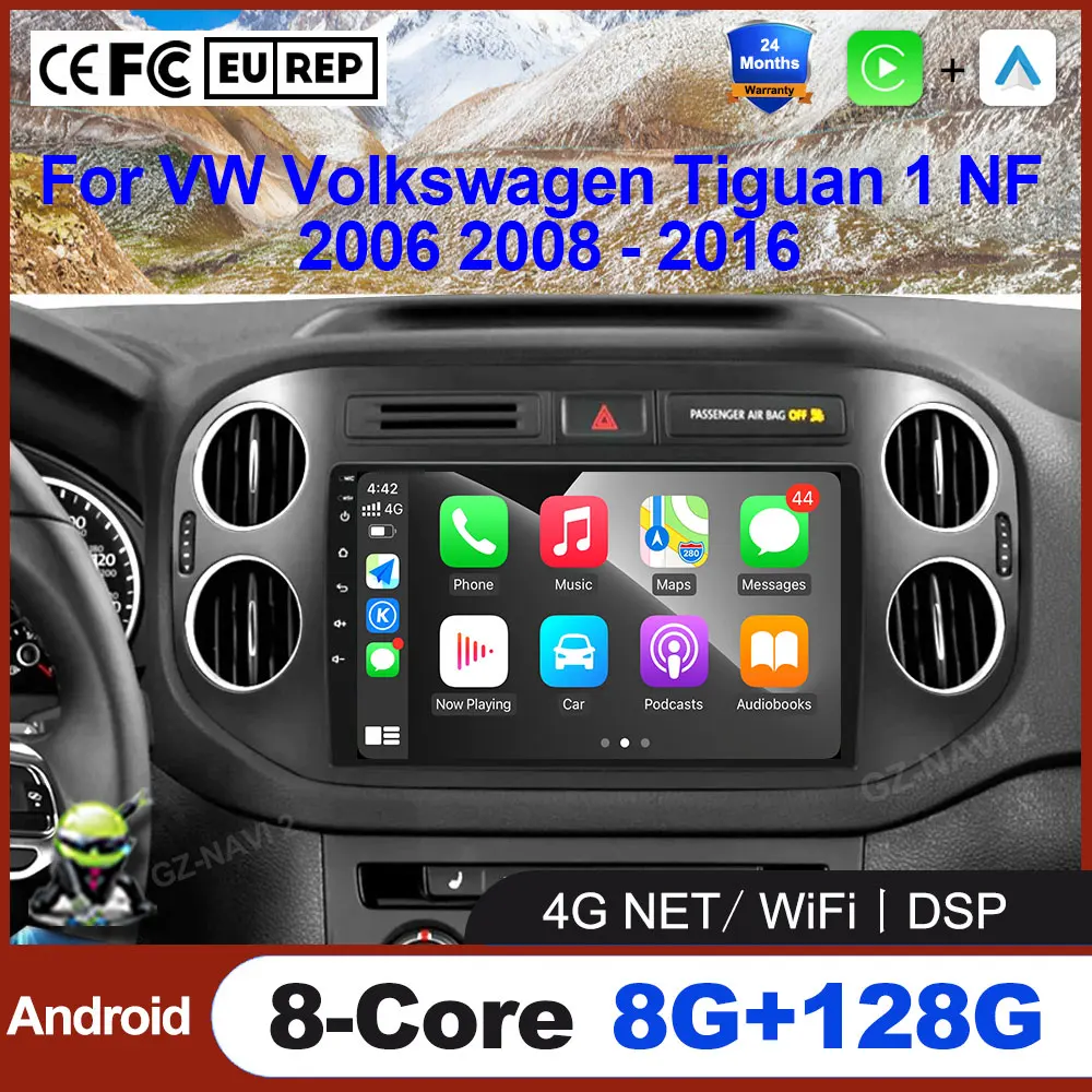 Android 16 Auto Wireless Carplay Car Radio Tools For VW Volkswagen Tiguan 1 NF 2006 - 2016 GPS Navig...