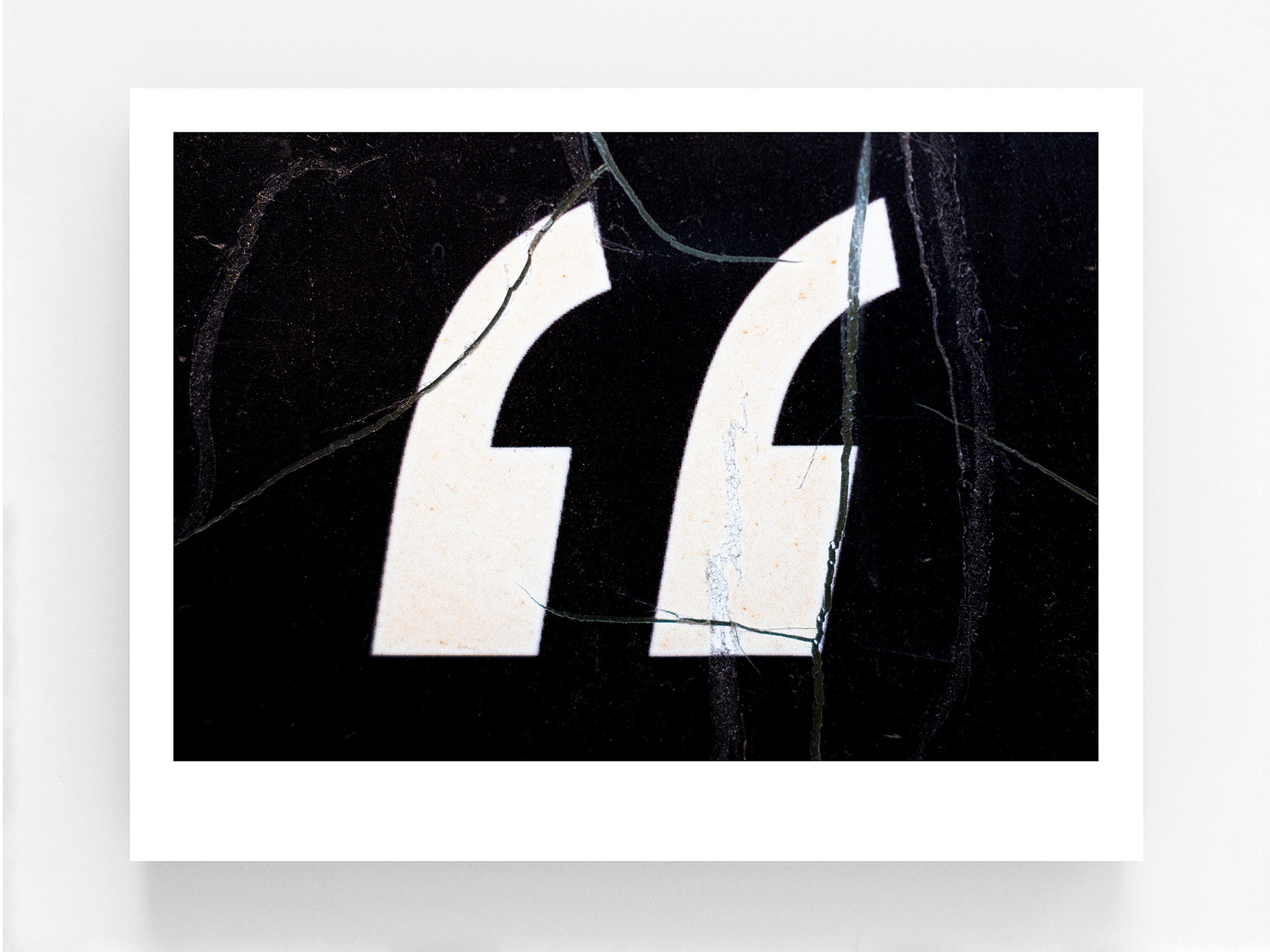 "An extreme close up of a quotation mark on a store sign in Long Island City, Queens NYC. The b...