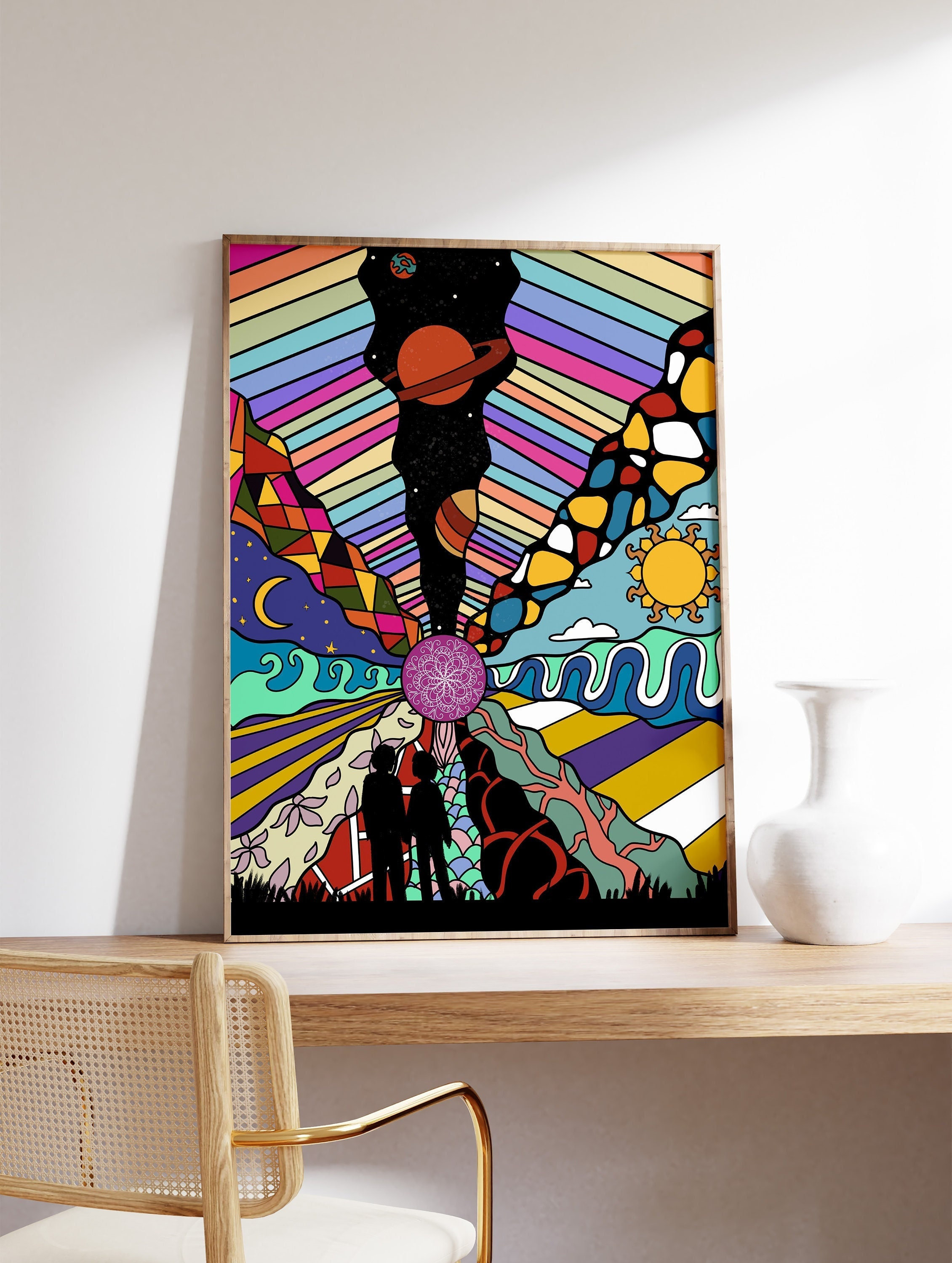 70's Psychedelic Art Print, Pop Art Poster, Spiritual Print, Yoga A...
