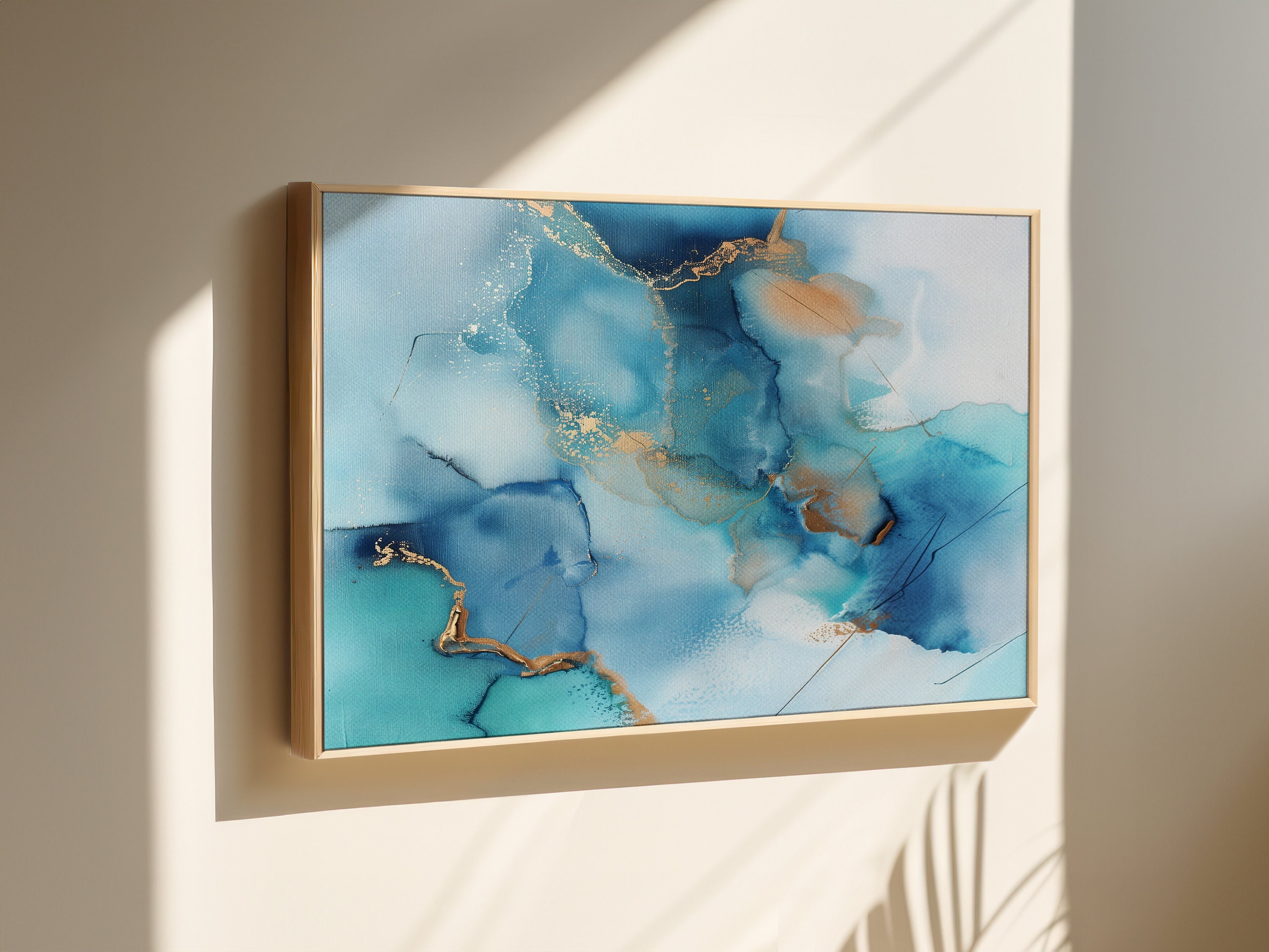 Turquoise Blue gold painting Abstract Textured wall art Framed wall...