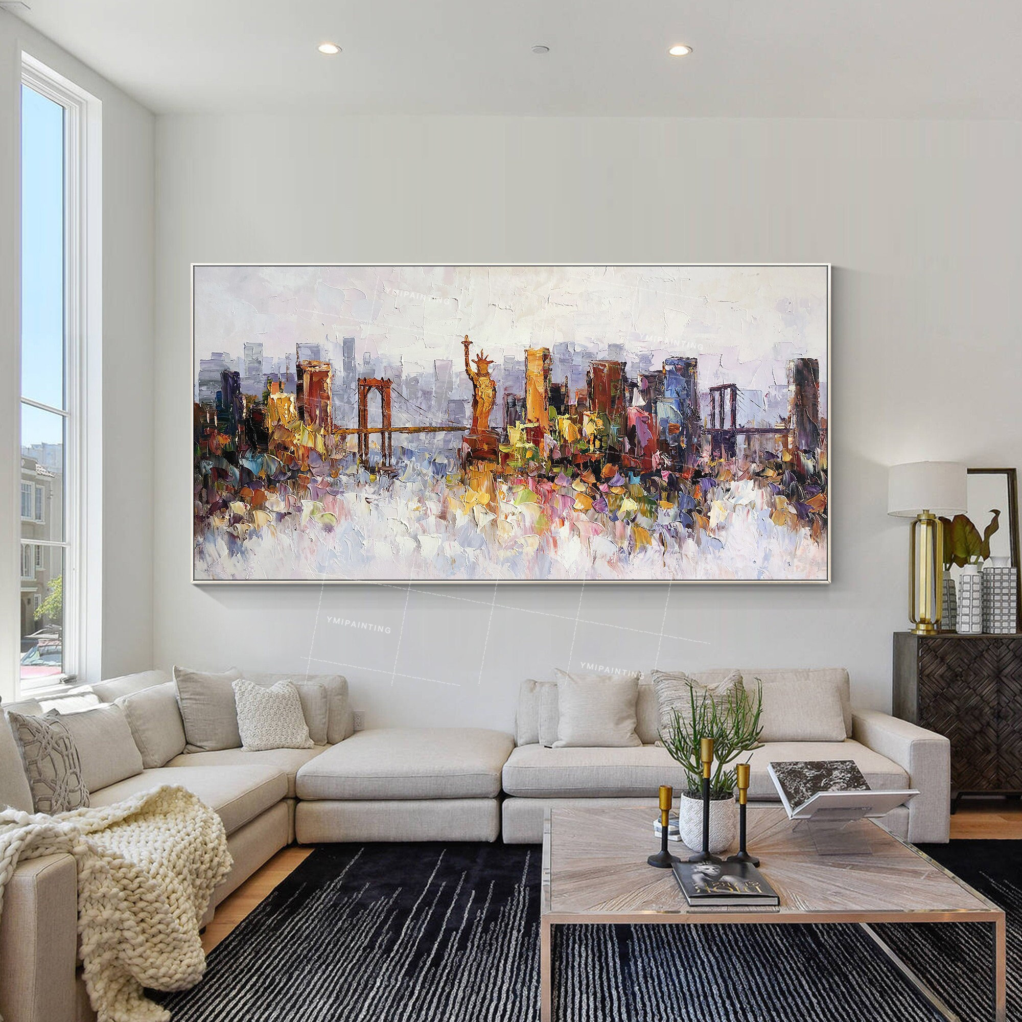 ABOUT THE PAINTING. Title:New York skyline oil paintings on Canvas Original heavy texture Statue of ...