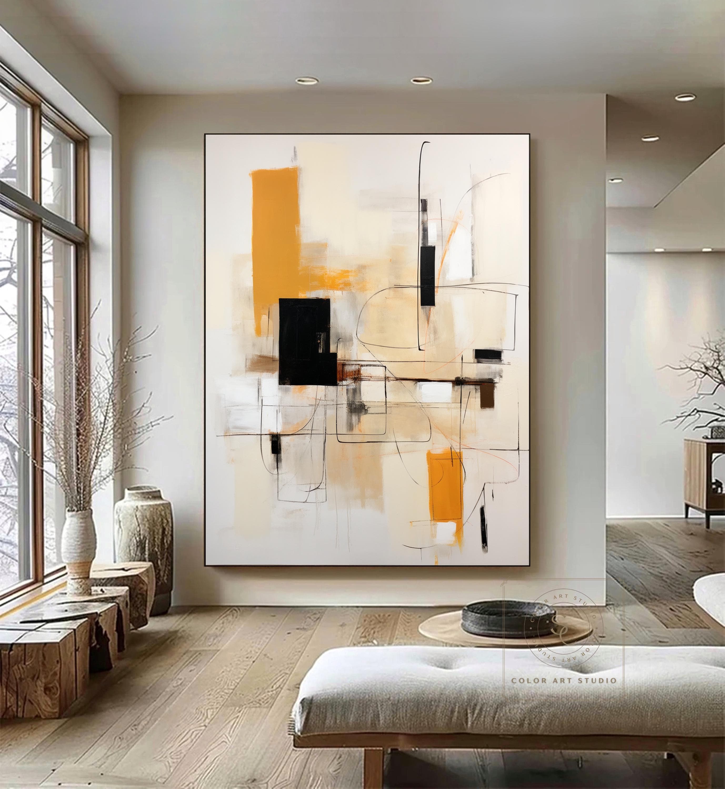 Beige Abstract Painting Yellow Minimalist Painting Large Beige Wall...