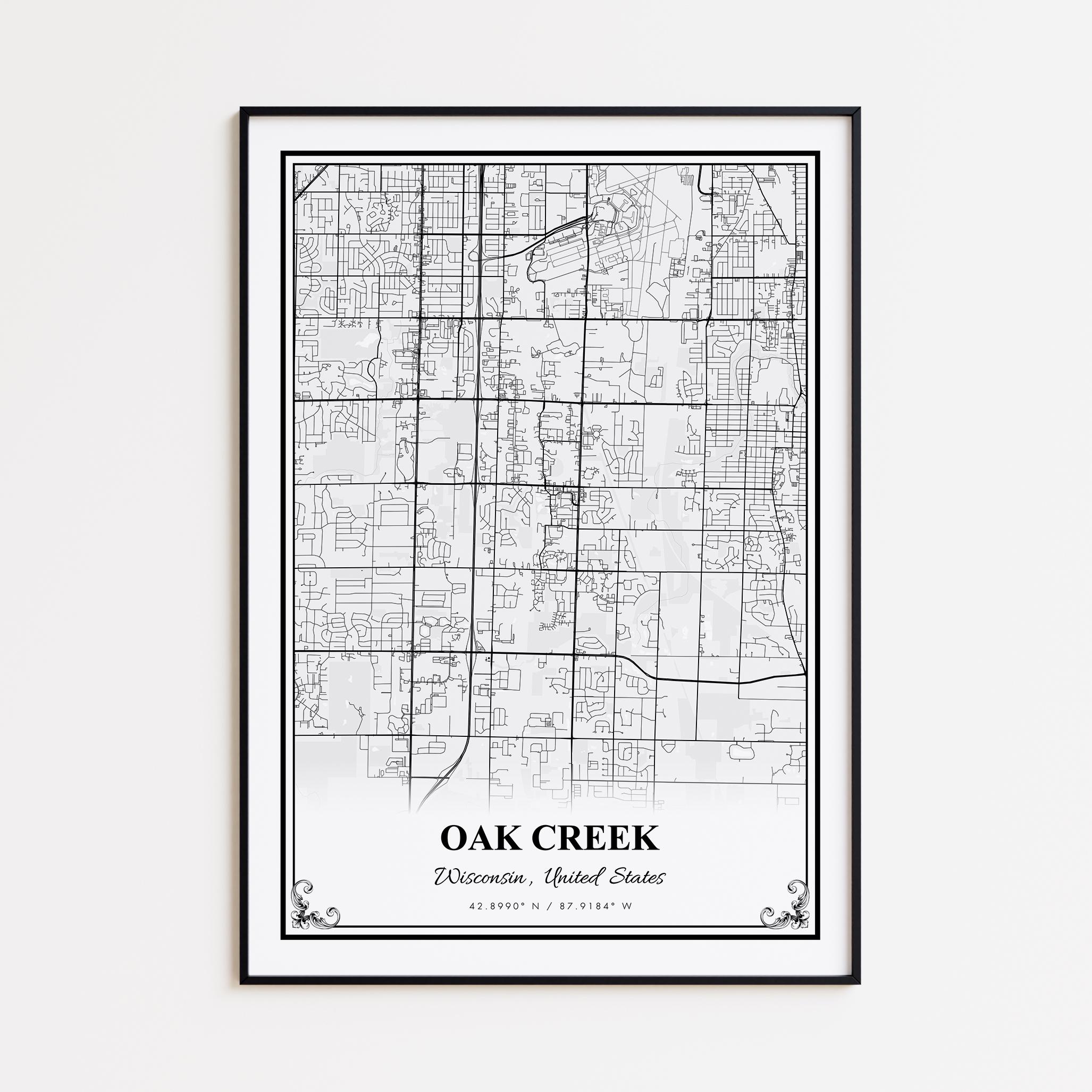 Oak Creek Map Print, Oak Creek Wisconsin Wall Art Poster, Oak Creek...