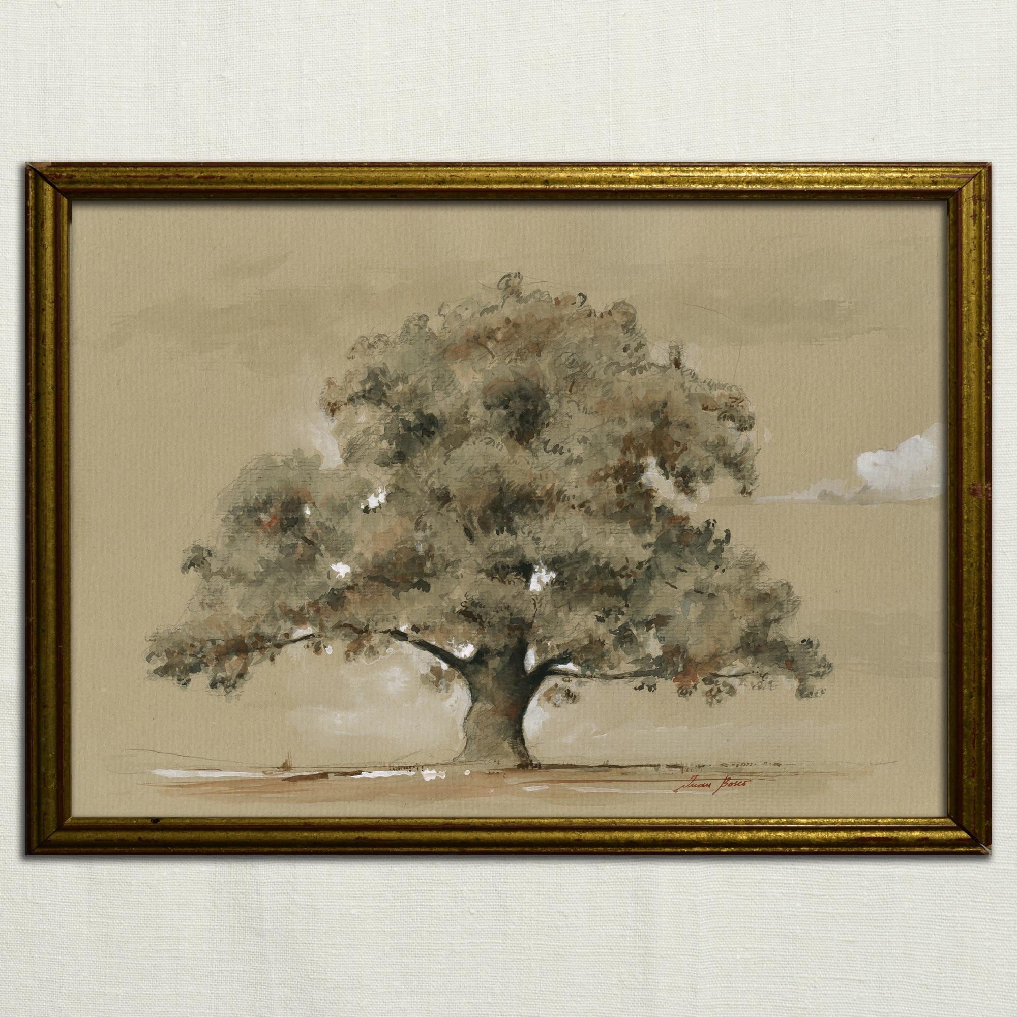 Unique framed oak drawing | Tree original drawing, Vintage trees ar...