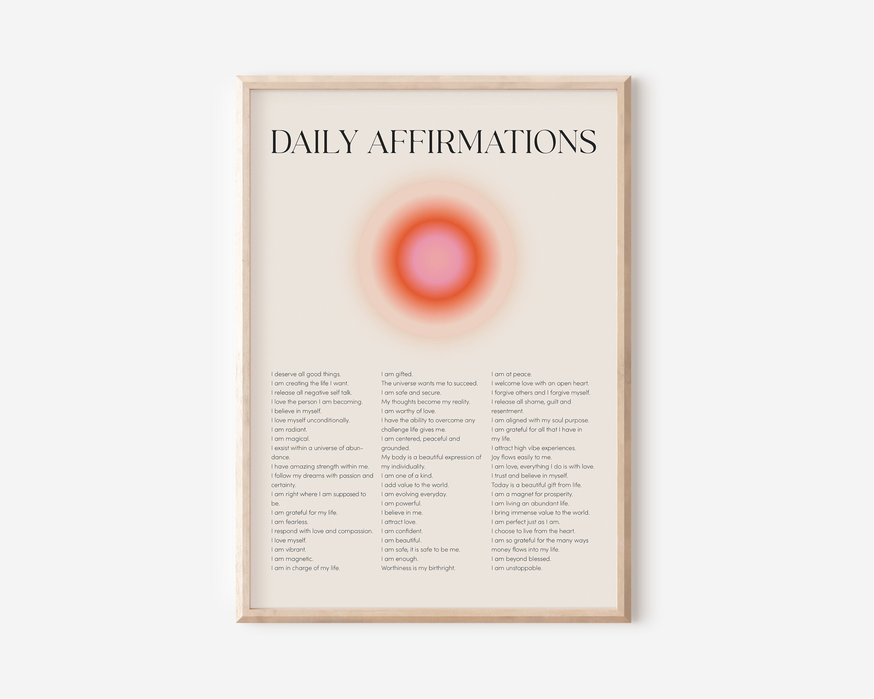 Affirmation wall art poster, daily affirmations print, words of affirmation poster to add to your be...