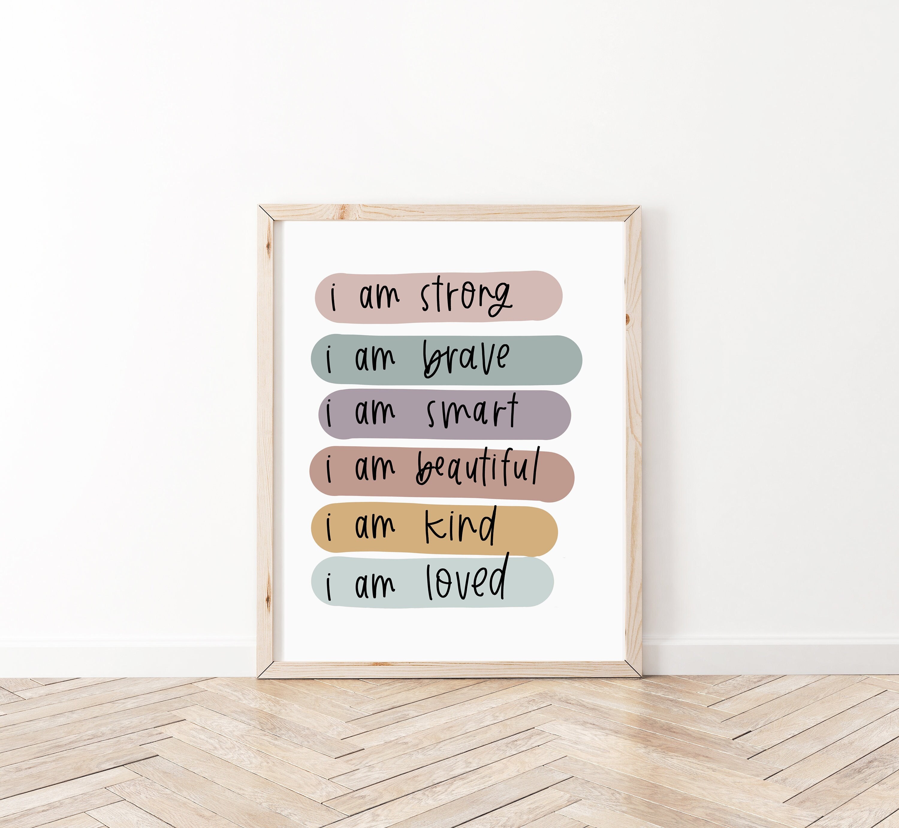 "Perfect Positive Affirmations Poster for your kids room decor - \"I am strong, I am brave...