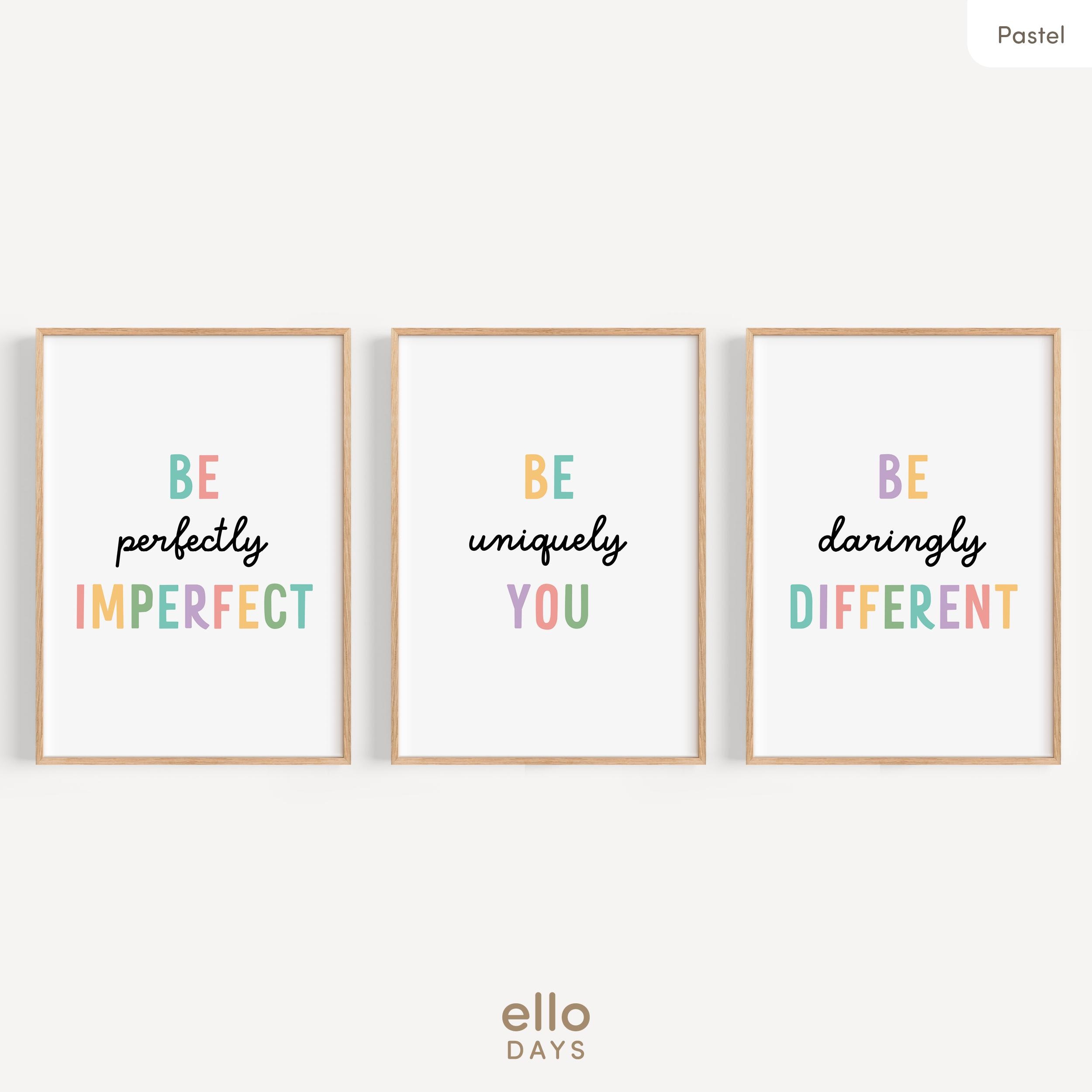 "This \"Imperfect, Unique, Different\" kids affirmations poster set of 3 (Pastel Pale...