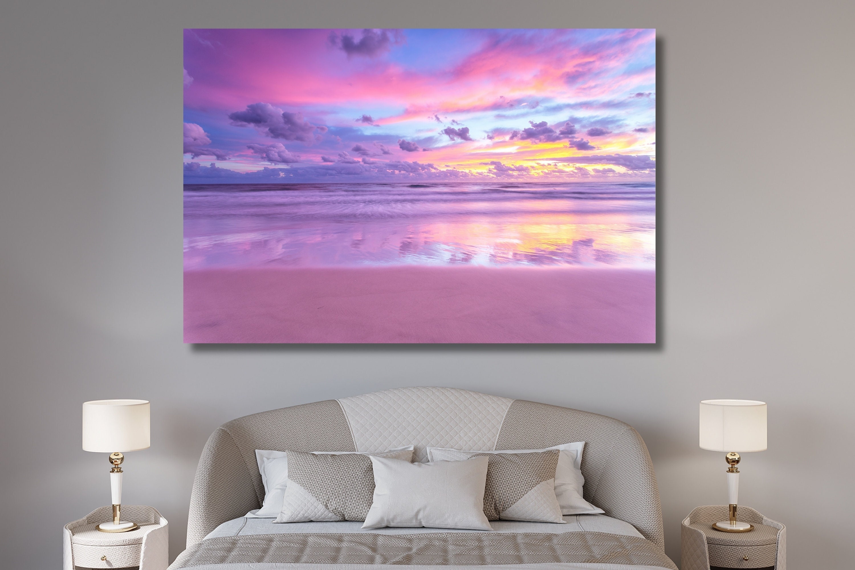 Purple Sunset Sea Shore Beach Canvas Wall Art,Tropical Landscape ar...