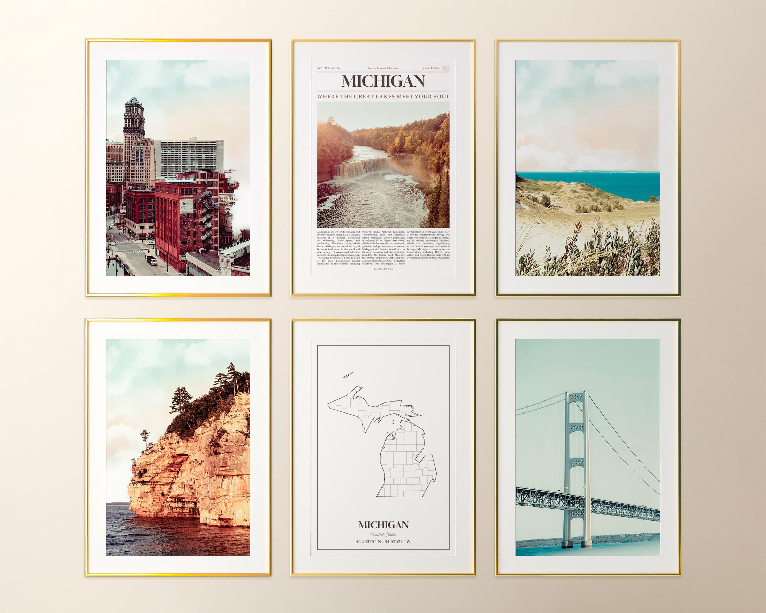 This collection includes six beautiful prints to create a gallery wall of Michigan. All posters are ...