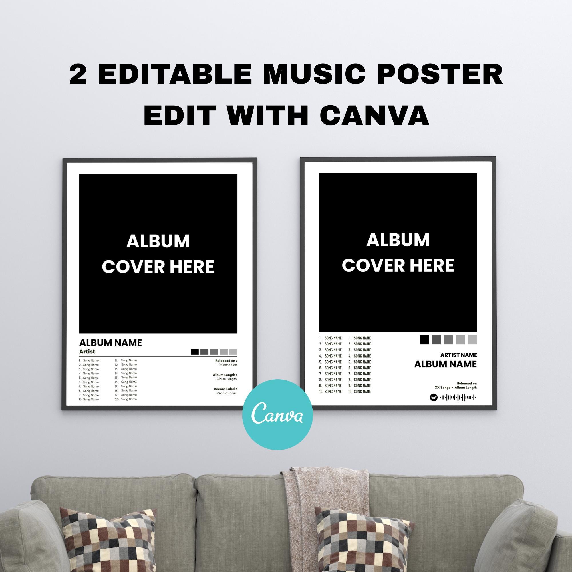 Digital Album Cover Wall Art | Customizable Canva Template | Printable Music Poster | Aesthetic Wall...