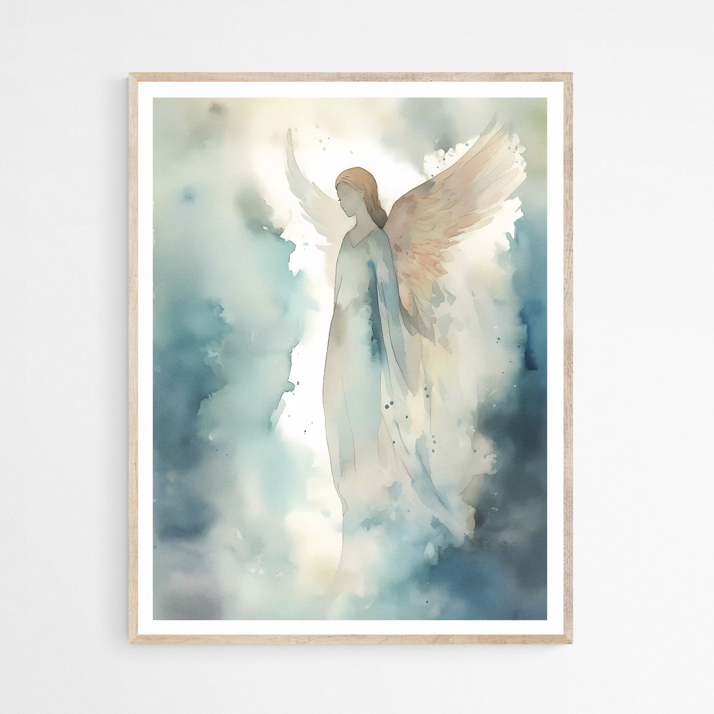 "Guardian Angel Poster Angel Watercolor Print Religious Wall Art Abstract Angel Artwork Persona...