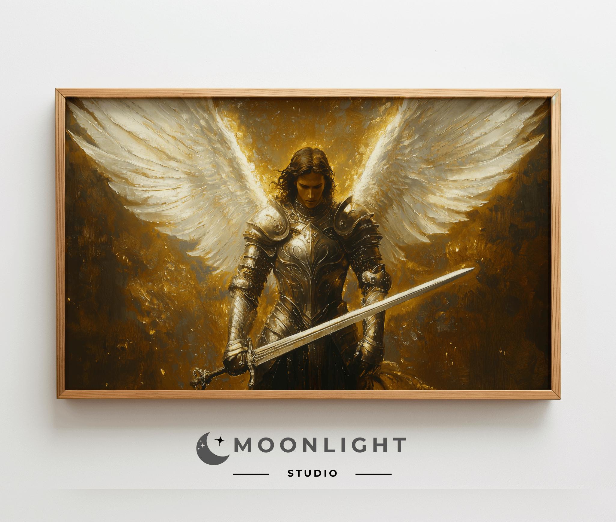 Archangel Saint Michael Frame Tv, Archangel Religious Wall Art, Cat...