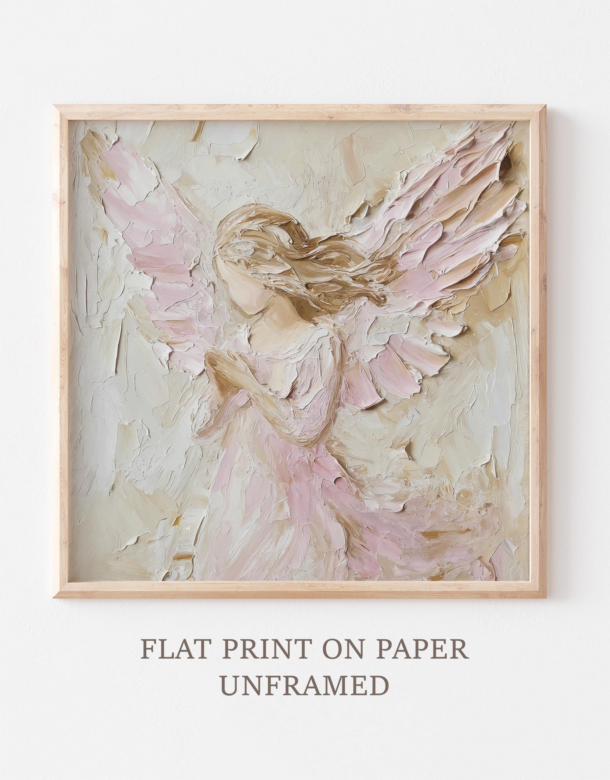 Soft Blush Angel Large Oil Painting Textured Angel Artwork Neutral Pink Wall Art for Bedroom Living ...