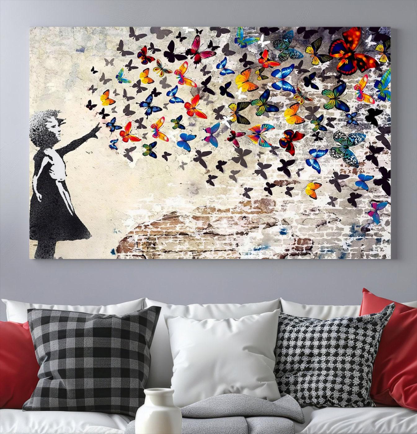 "Banksy girl butterfly wall art print, Banksy street art, Banksy canvas art, Banksy graffiti wa...