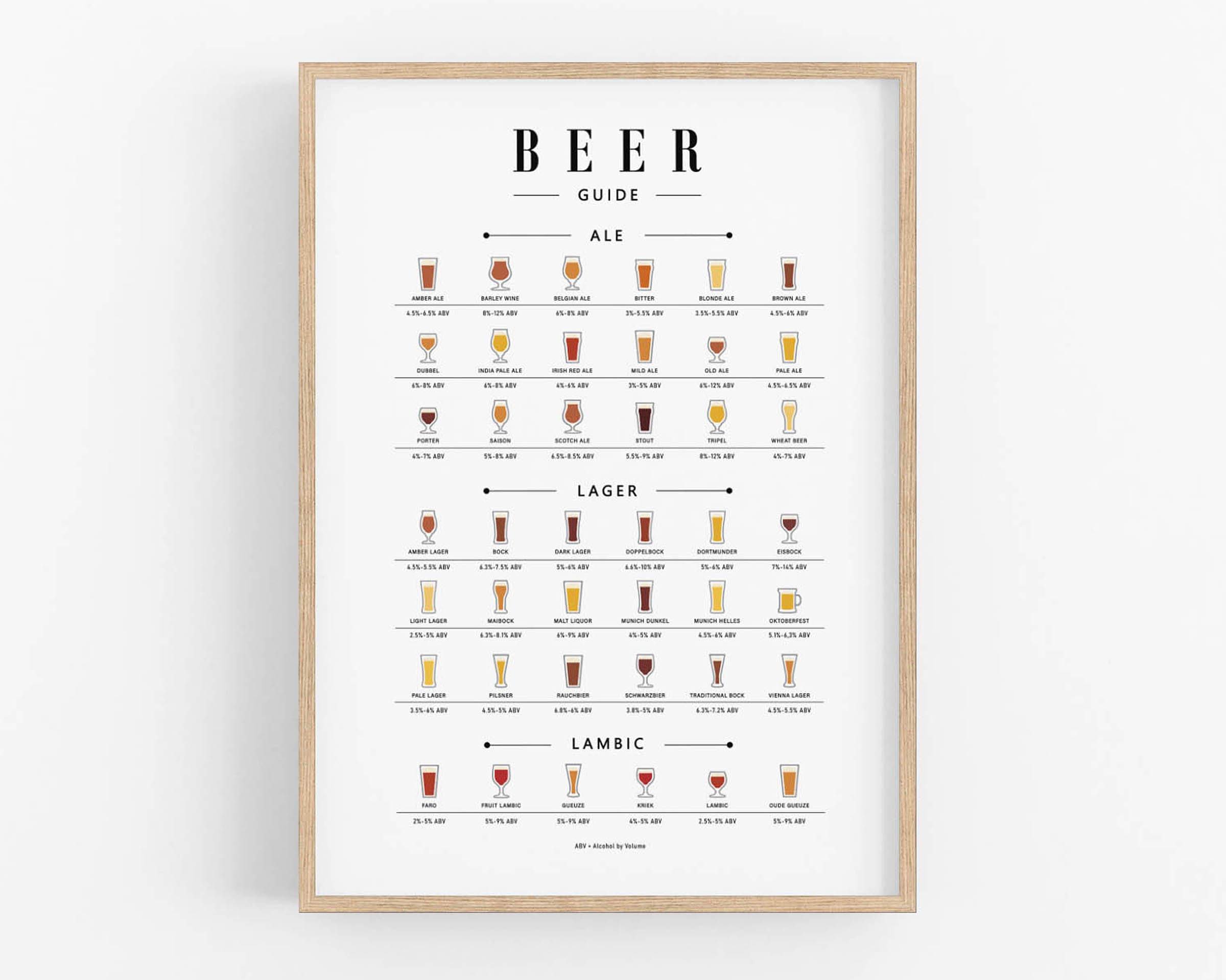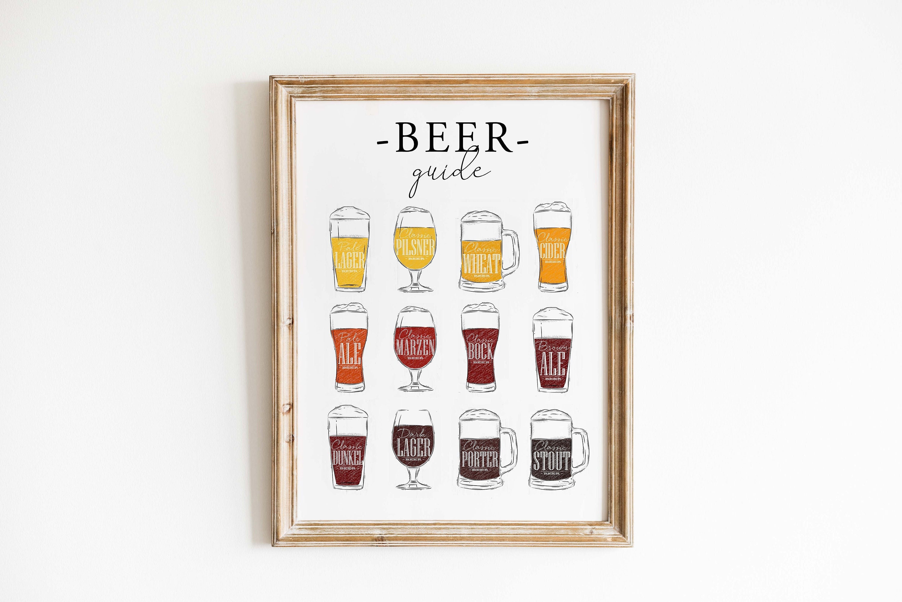 Beer Guide Print, Beer Poster, Types of Beer Wall Art, Bar Poster, ...