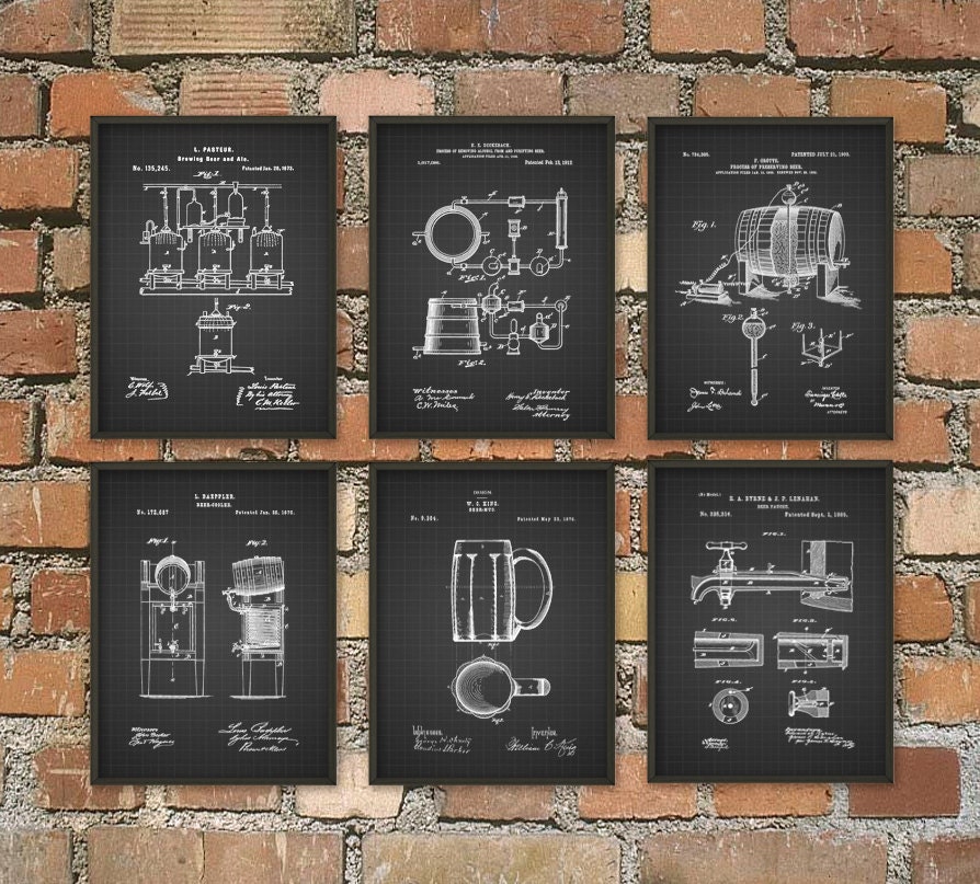 Beer Brewing Patent Prints Set of 6 - Beer Poster - Beer Art - Beer Wall Art - Beer Patent Print - B...