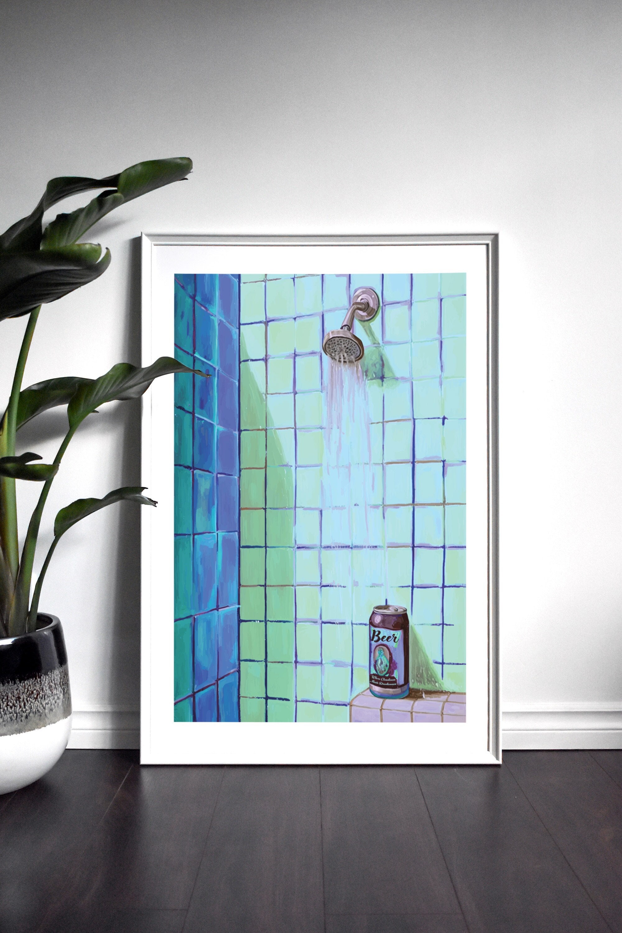 Shower Beer, Beer Art, Beer Artwork, Beer Poster, Beer Print, Blue ...