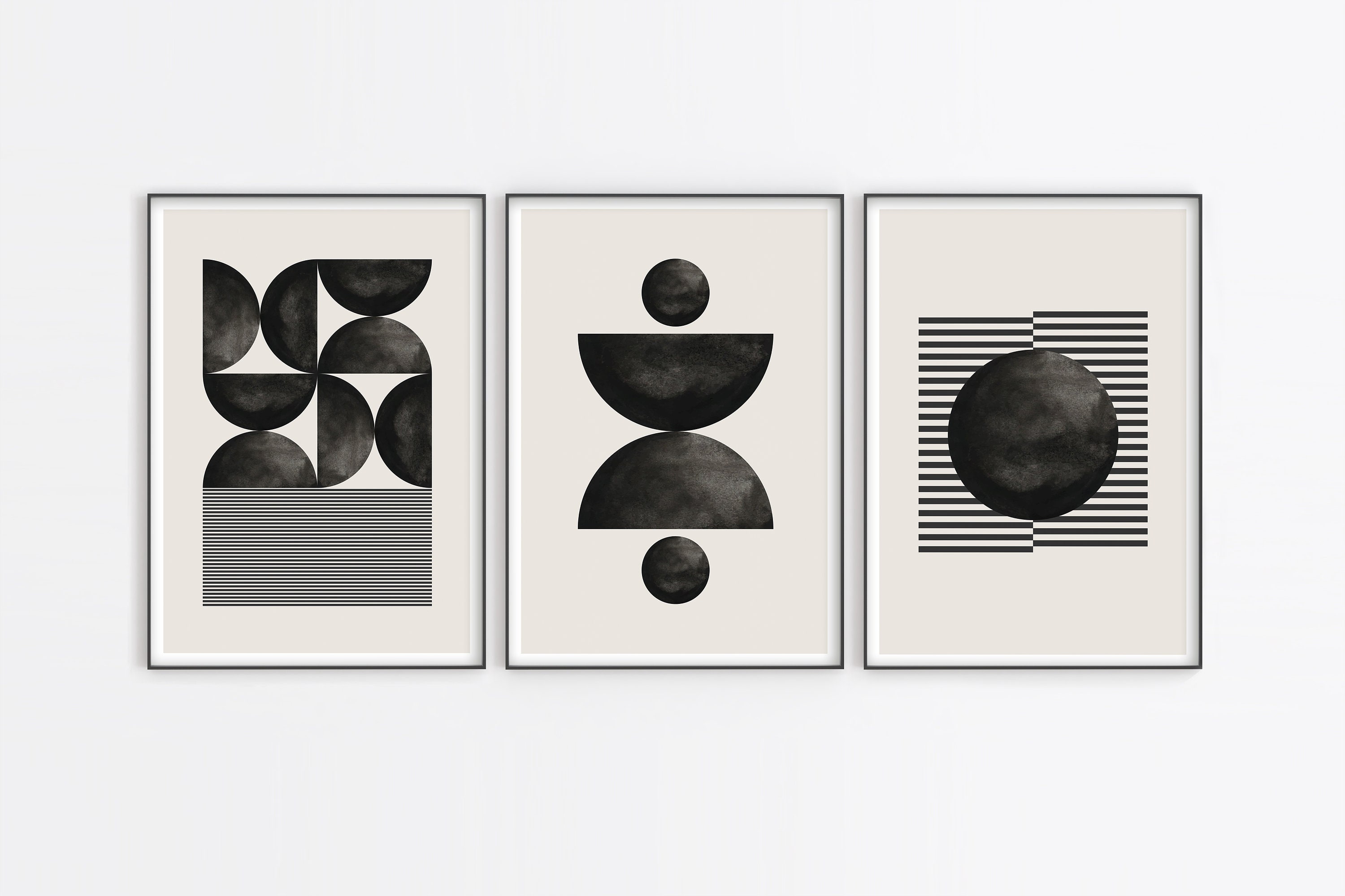 Monochrome Wall Prints Set of 3, Abstract, Wall Home Decor, Wall Ar...