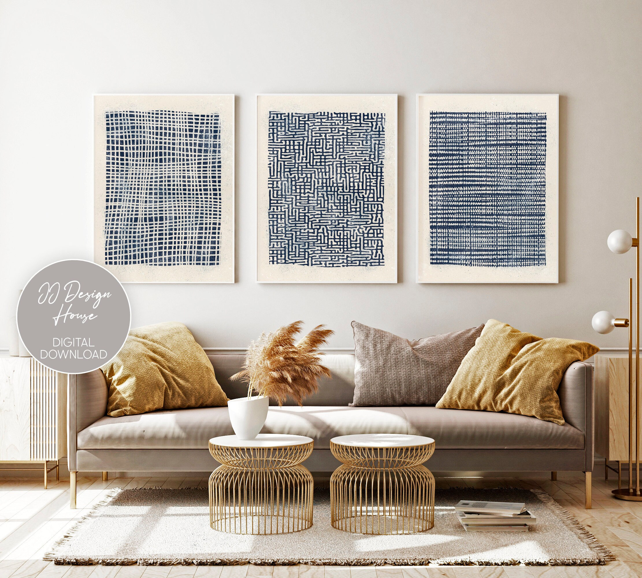 "DIGITAL DOWNLOAD. Blue Abstract Wall Art, Printable Wall Art Set of 3 Prints, Navy Blue Wall A...