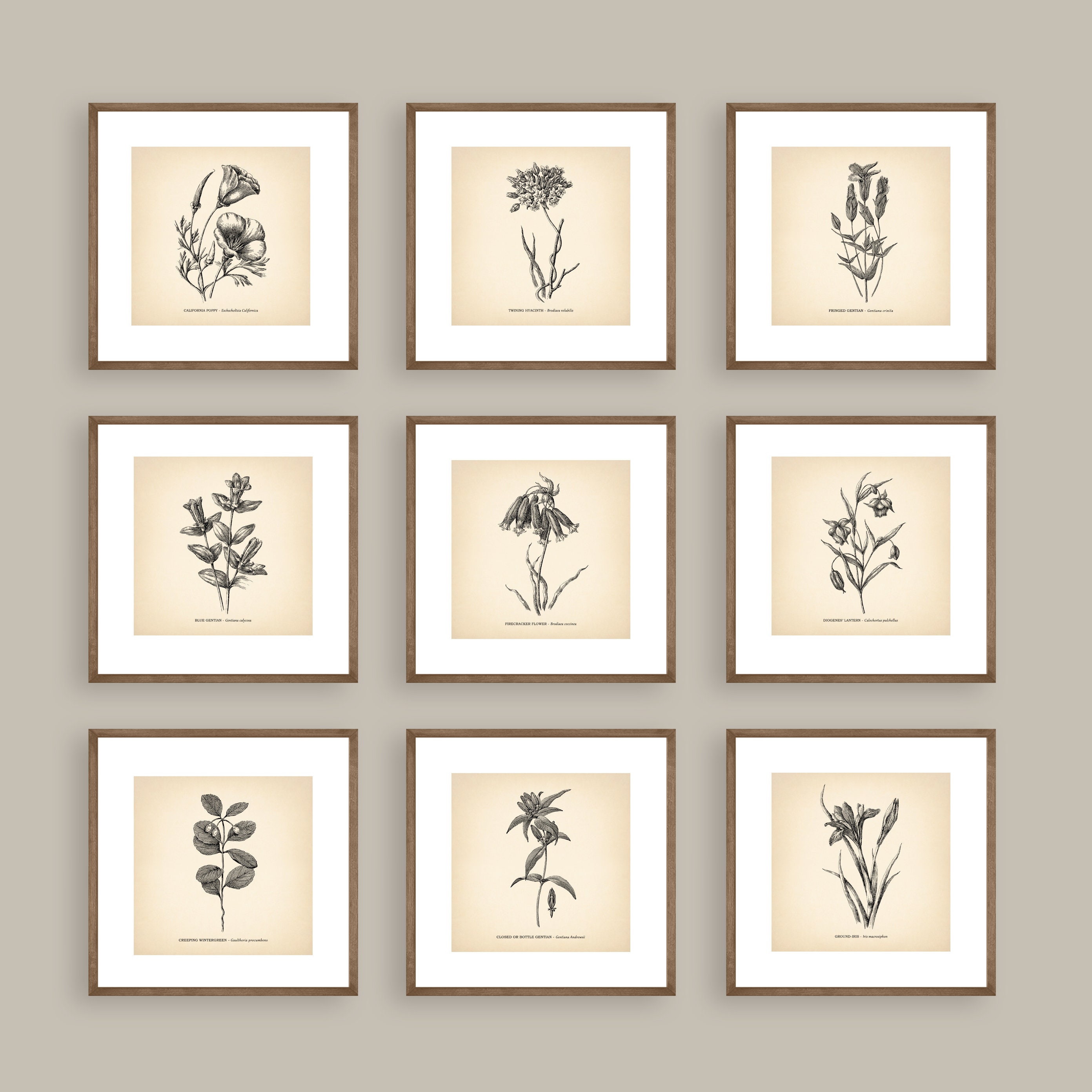 Vintage Botanical Prints Set of 9 Botanical Posters Wildflower Bota...