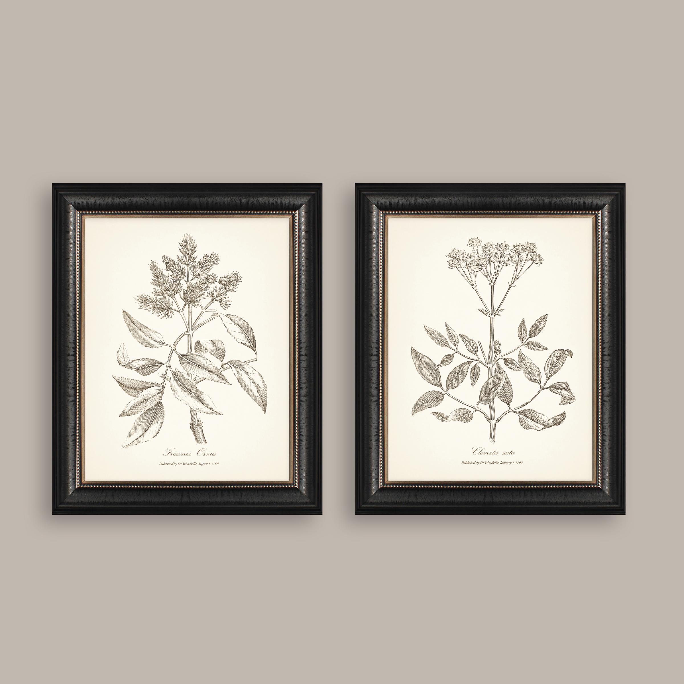 Duo Vintage Botanical print, Minimalist botanical posters, Black an...