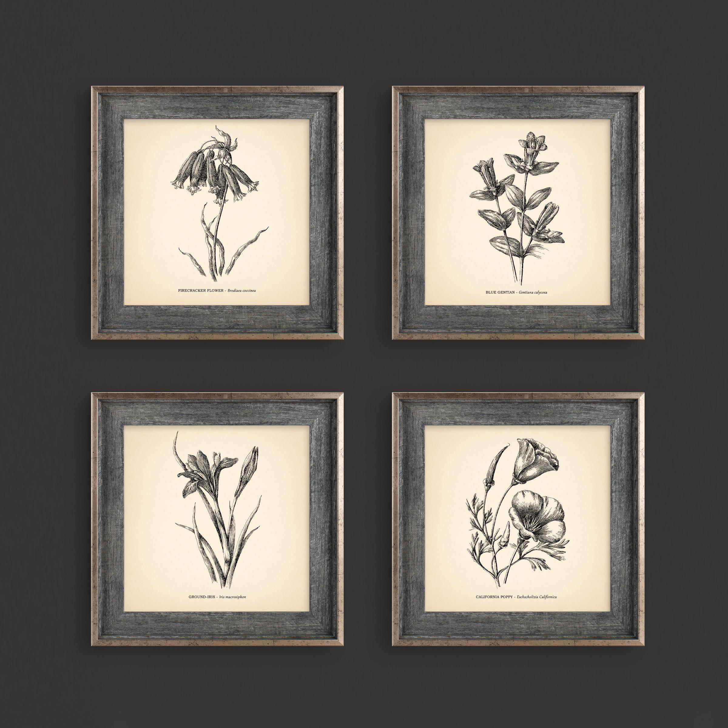 8x8'' Vintage Botanical Prints Set of 4 Botanical Poster Wildflower...
