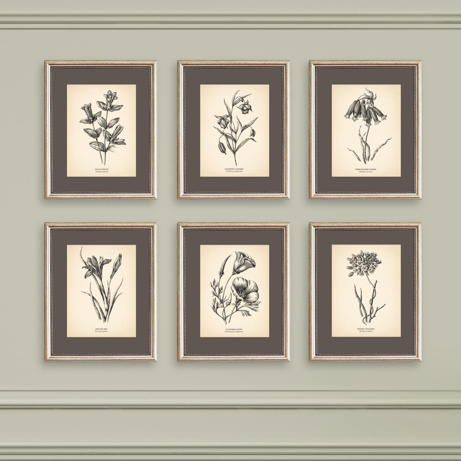8x10'' Vintage Botanical Prints Set of 6 Botanical Poster Wildflowe...