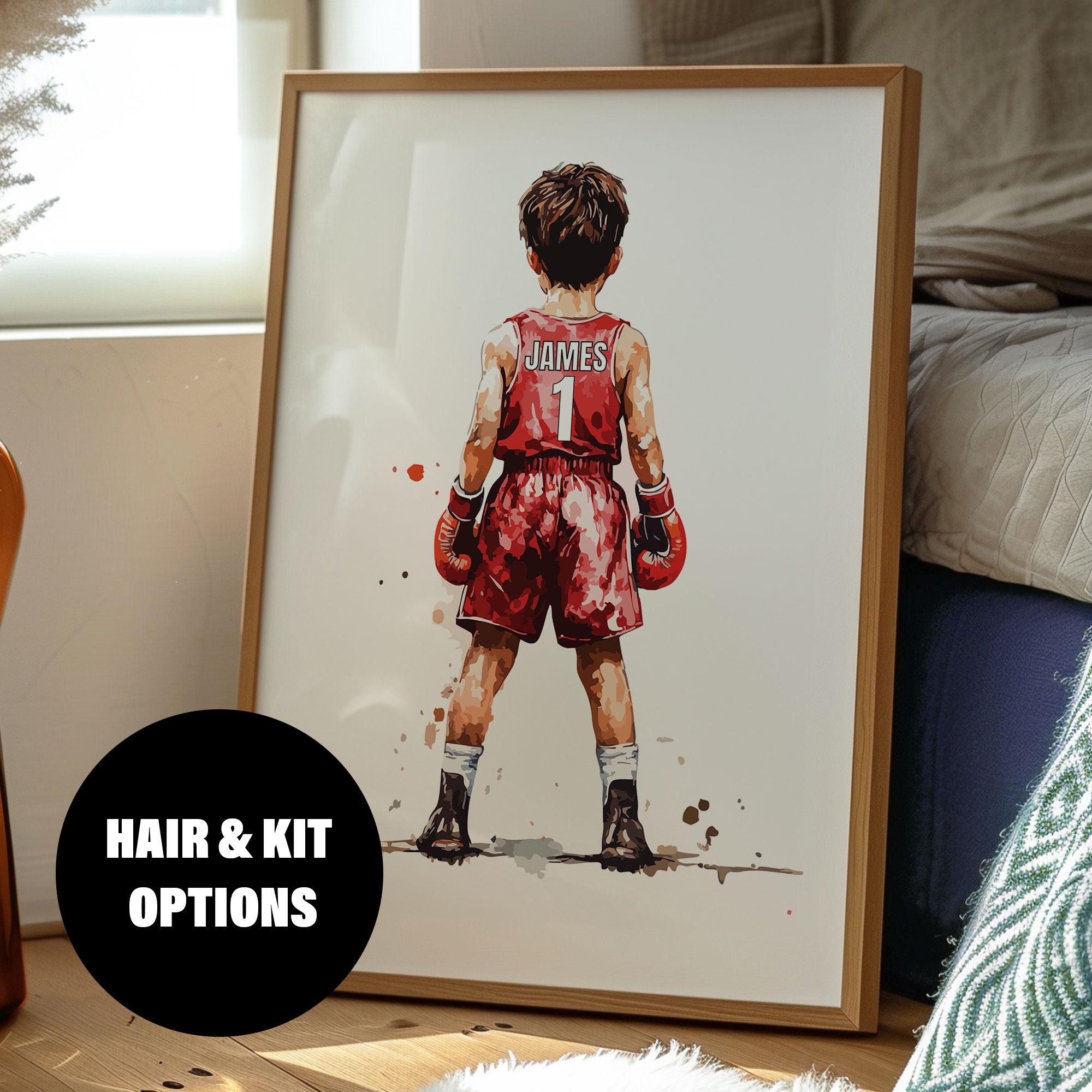 Introducing our stunning personalised watercolour print of a young boxer, perfect for inspiring the ...