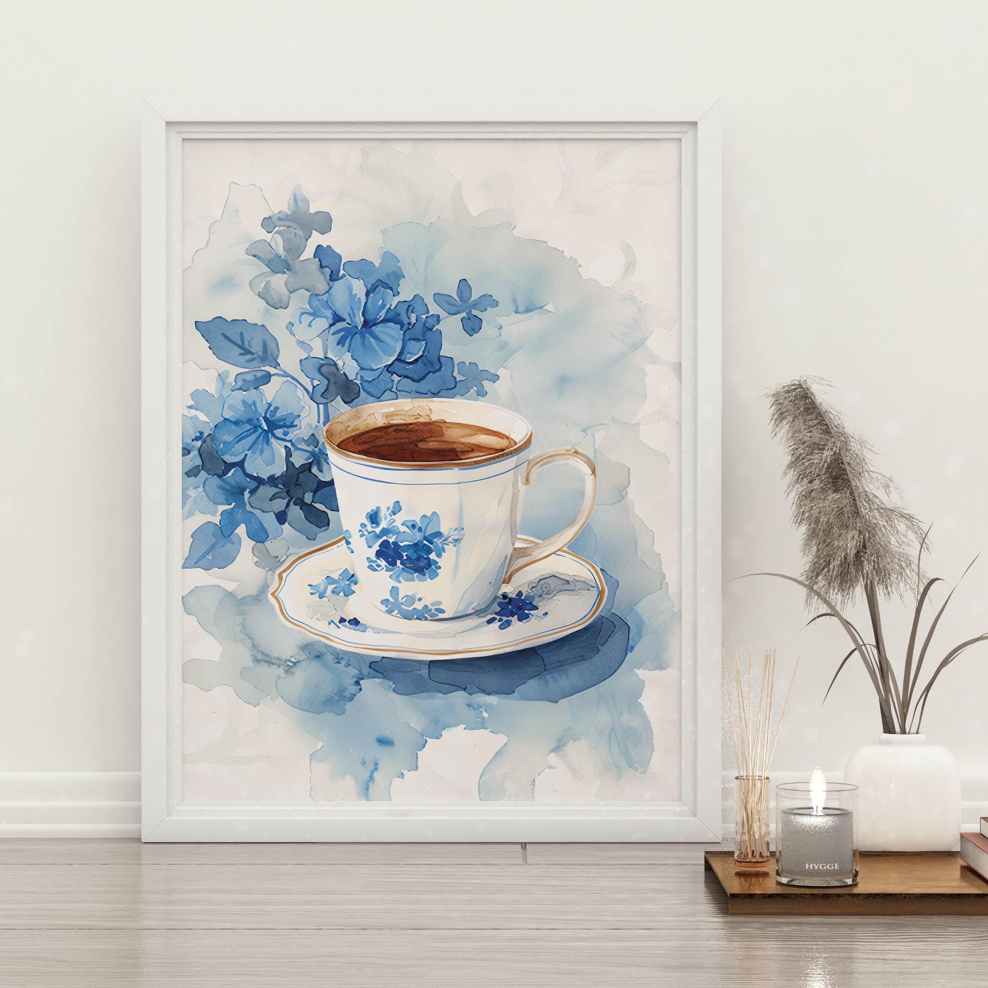Tea Cup Abstract Painting, Vintage Tea Cup Poster, Tea Cup Kitchen ...