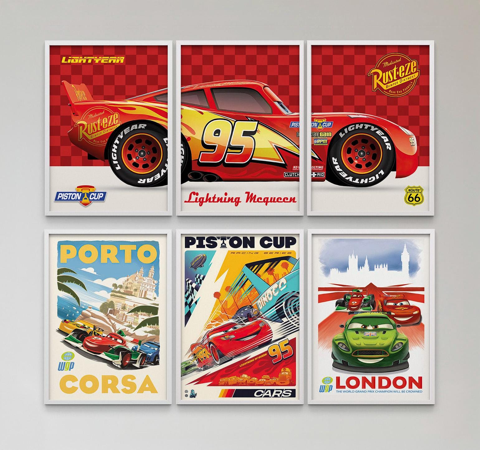 Cars movie Poster Set of 6, Lightning McQueen, Piston Cup, McQueen ...