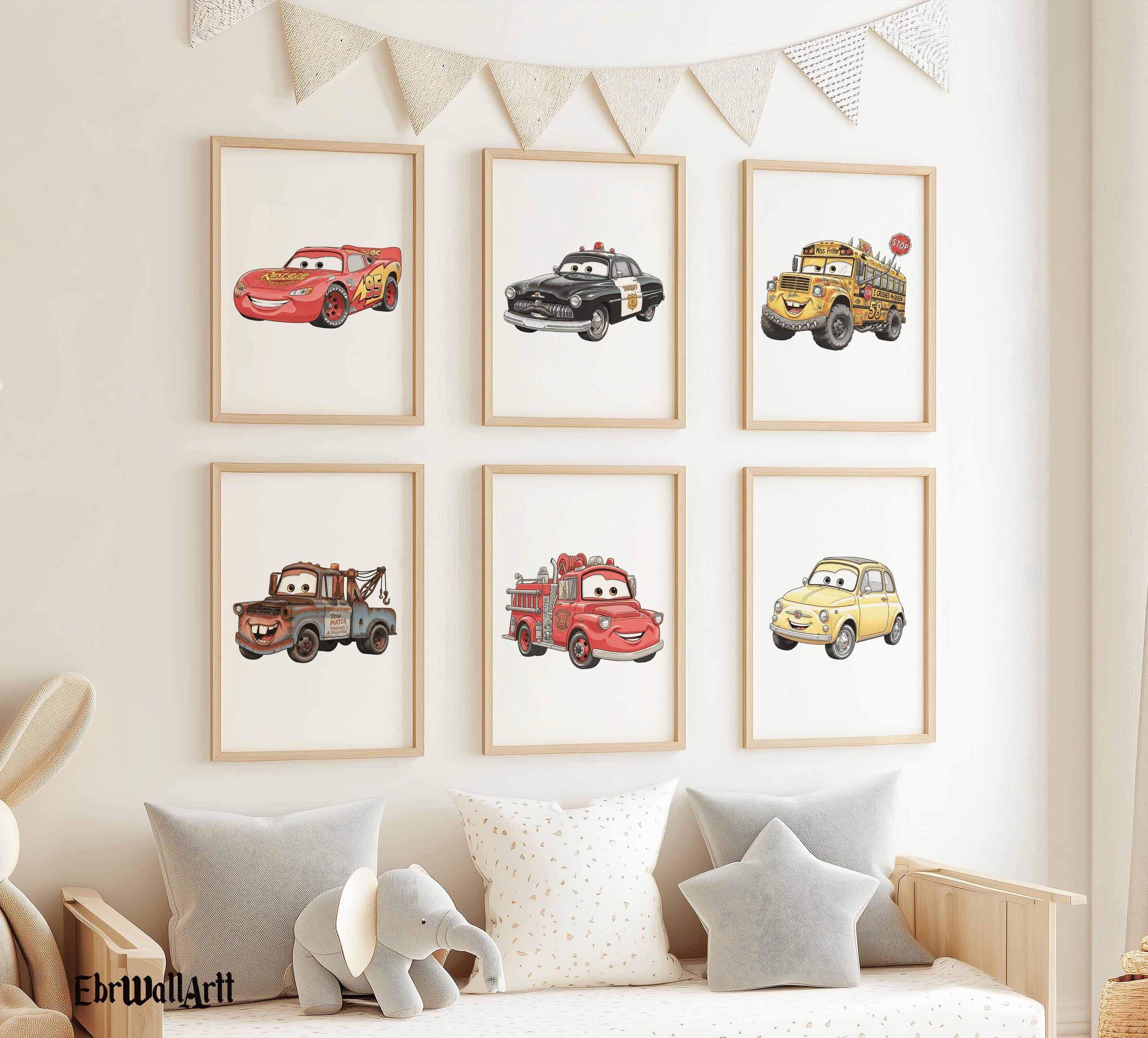 Cars wall art set of 6 | Cars prints | cars wall art | Boys room de...