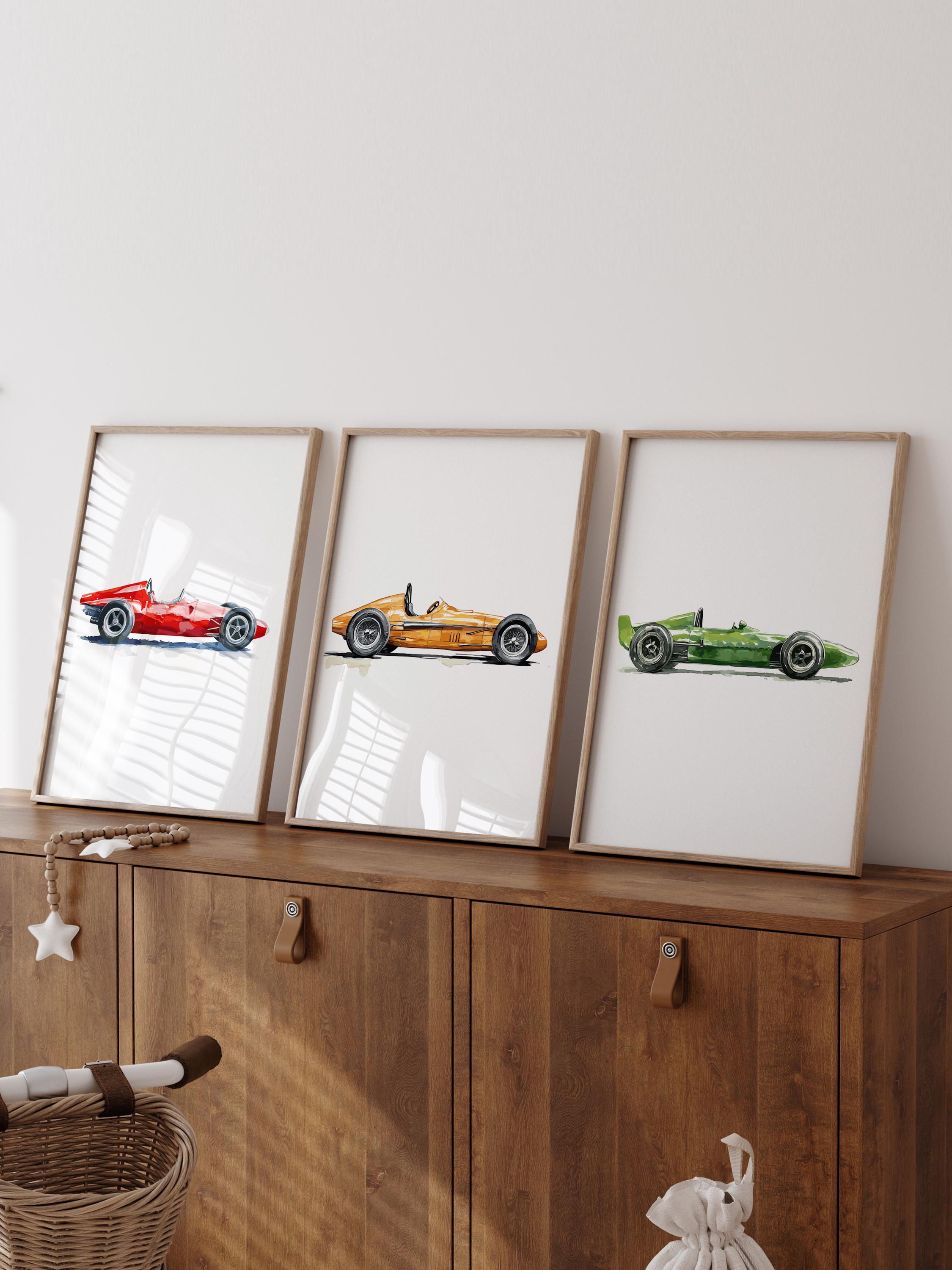 Set of 3 Racing Car Nursery Prints, Vintage Cars Wall Art, Boys Nur...