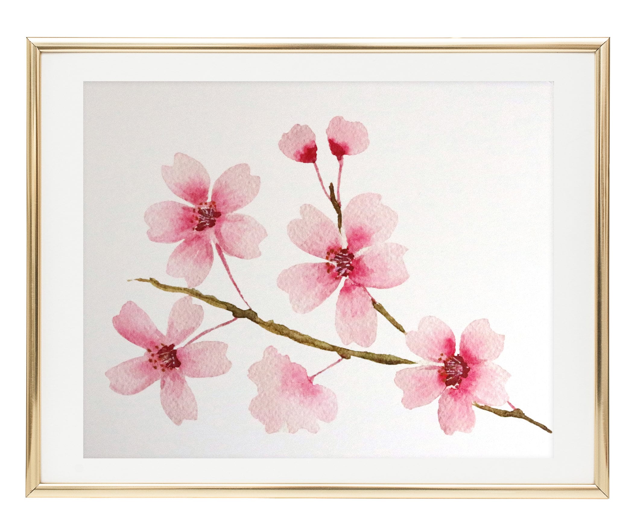 Watercolor Cherry Blossom Branch Art Print | Spring Botanical Cherr...