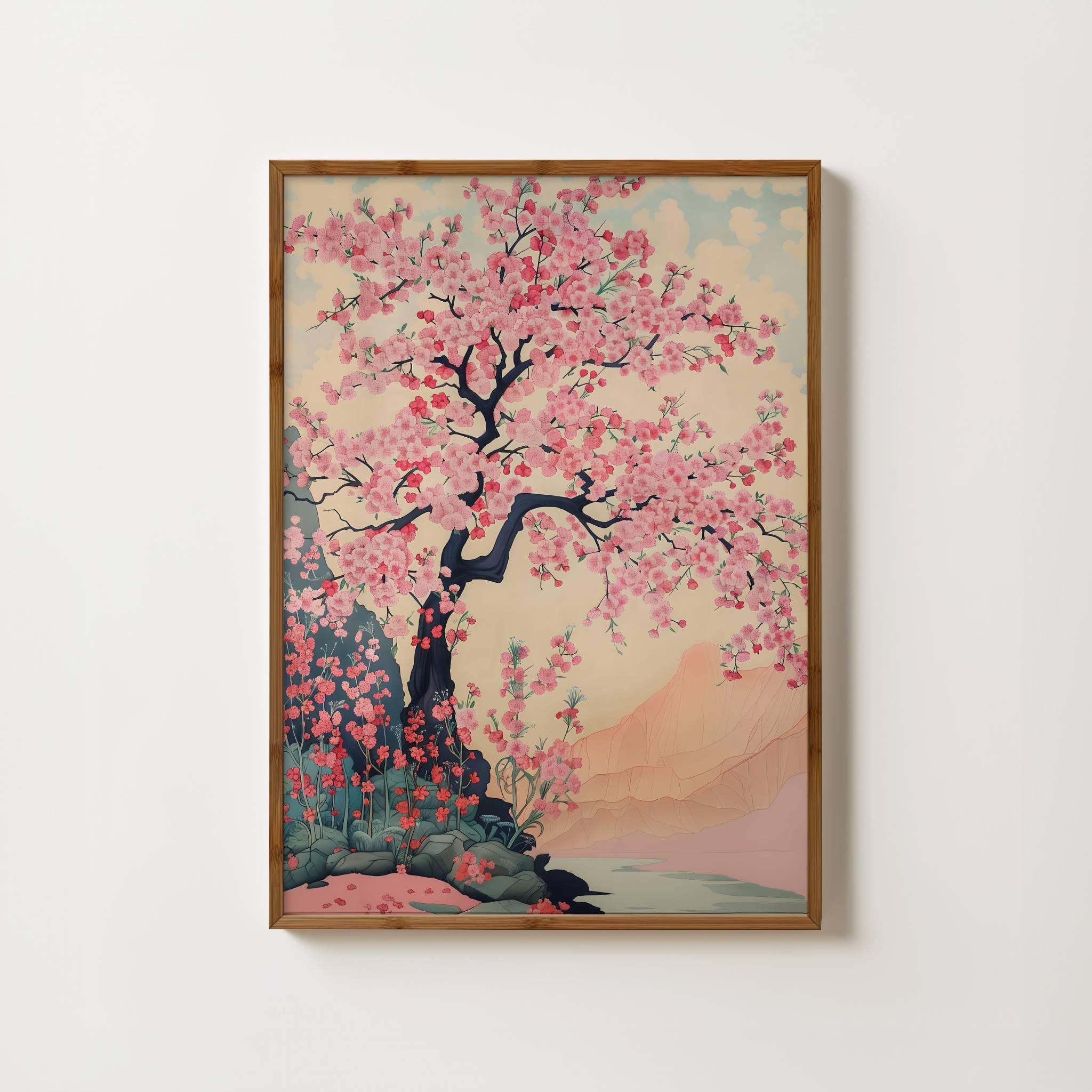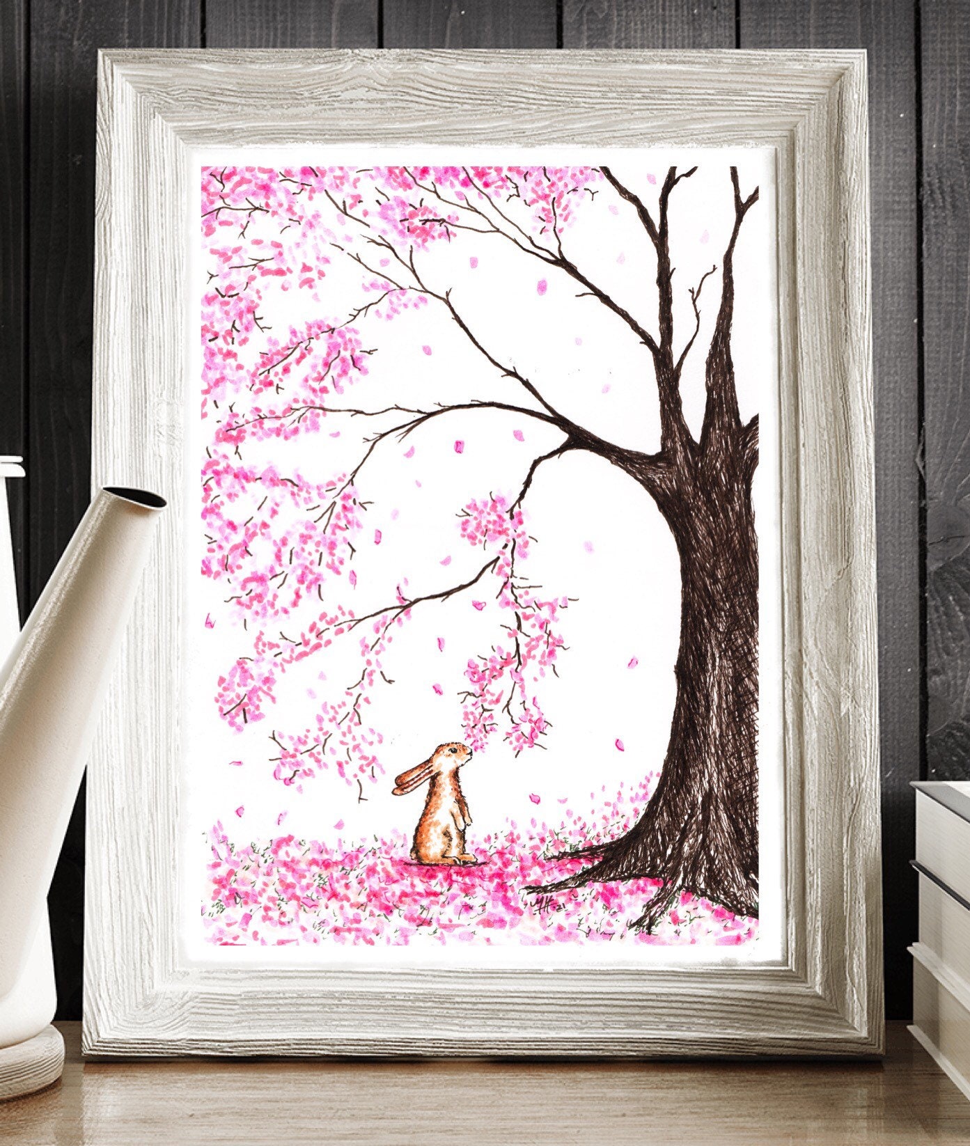 Cherry Blossom Tree Print Japanese Tree Art Sakura Tree Poster Cher...