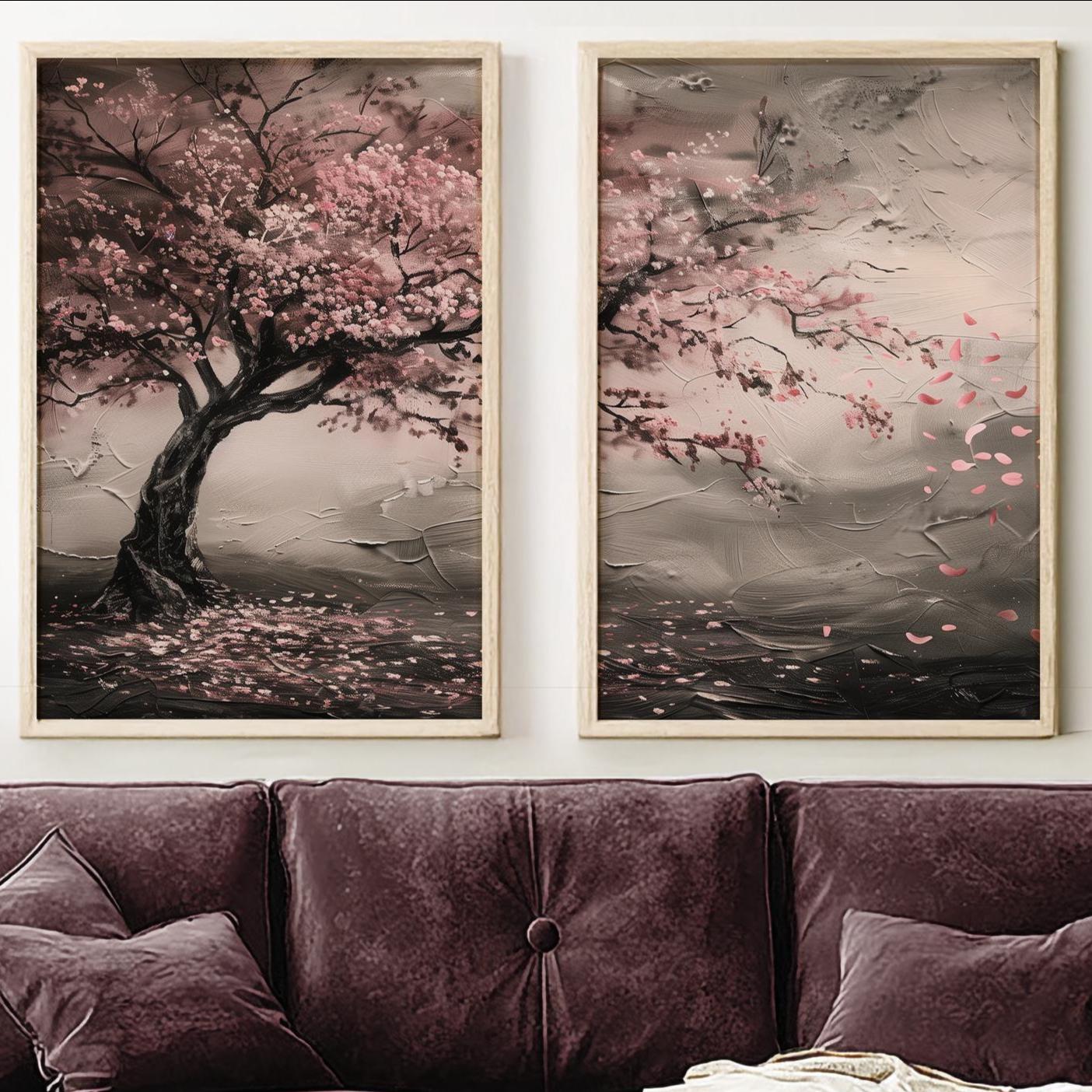 Cherry Blossom Print, Set of 2 Japanese Cherry Tree Wall Art, Moder...