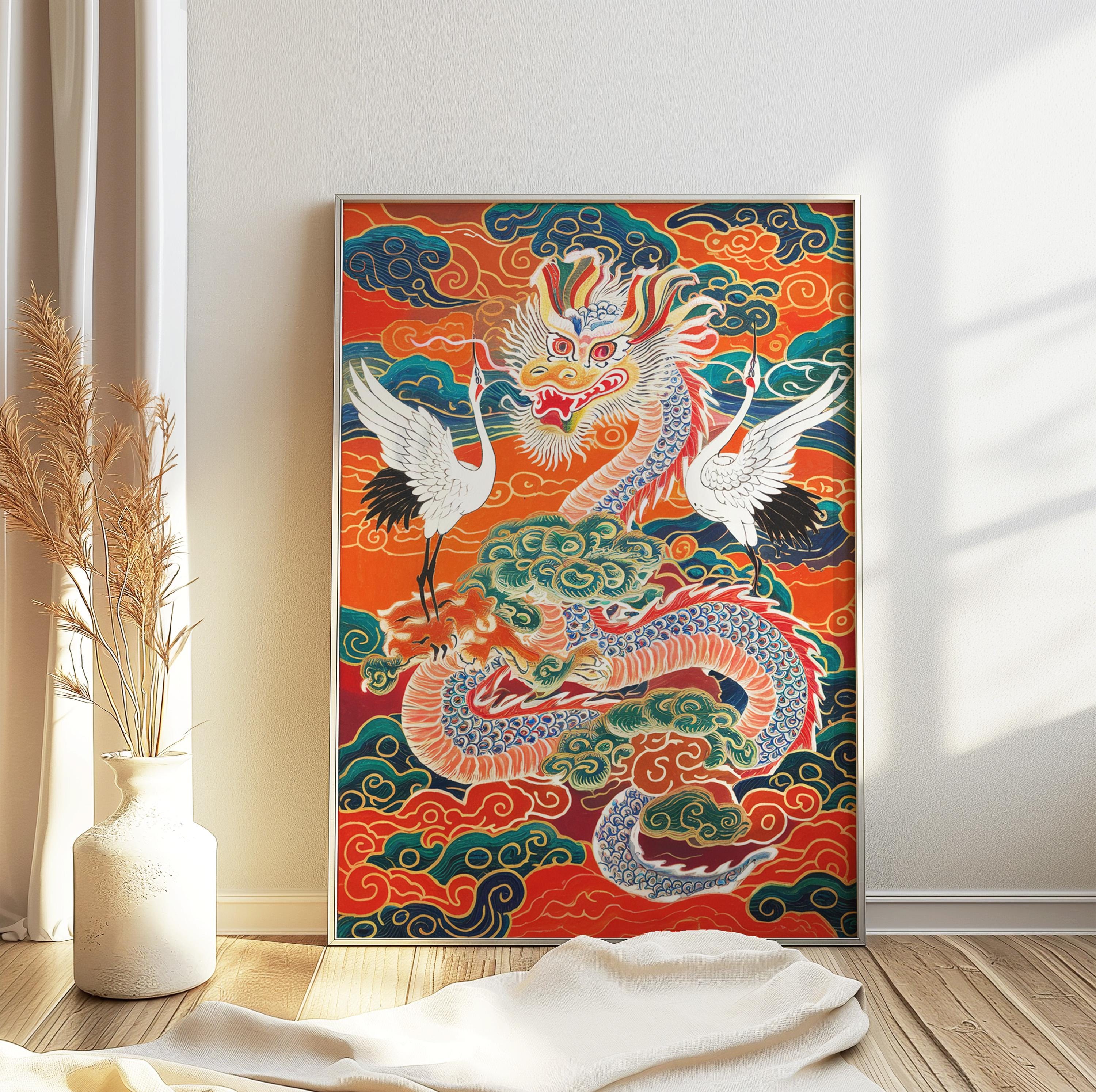 Chinese Dragon Wall Art, Dragon Poster, Chinese Print, Feng Shui De...